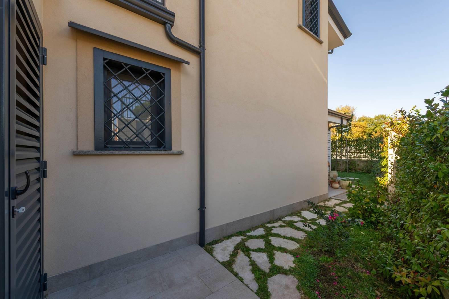 SICUREZZA E DOMOTICA: Infissi Schuco antieffrazione, zanzariere su ogni finestra (con modelli scorrevoli a scomparsa sulle porte-finestre), predisposizione domotica totale, allarme con videocamere e videocitofonia smart su entrambi i livelli.