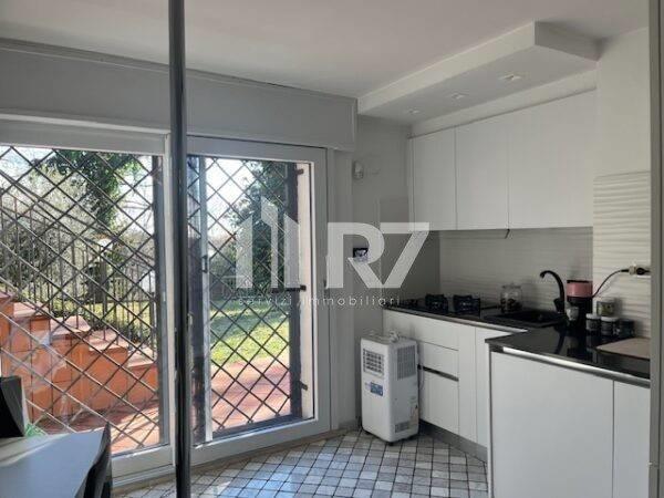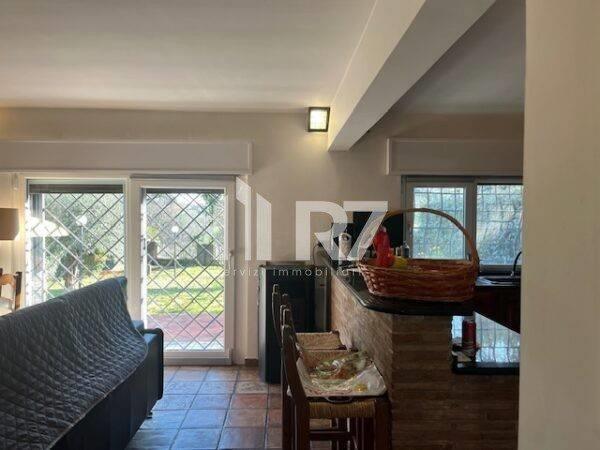 primo livello : salone con cucina a vista, servizio ed una dependance adiacente composta da soggiorno con angolo cottura, camera, servizio ed un curatissimo giardino di 300 mq circa;
