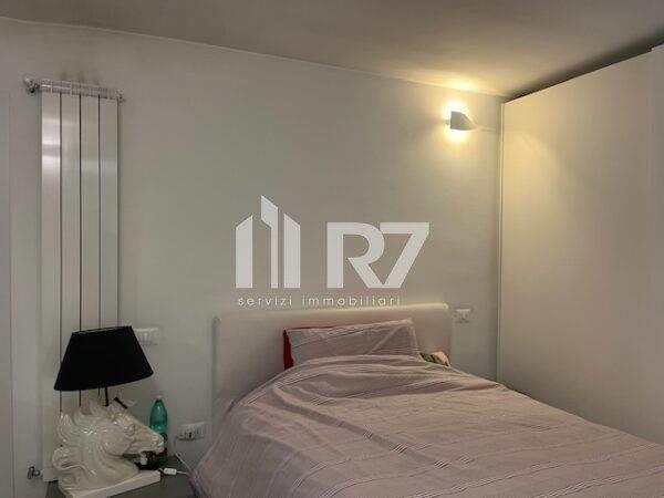 secondo livello: ingresso, salone triplo, camera, servizio e giardino pavimentato di circa 40 mq;