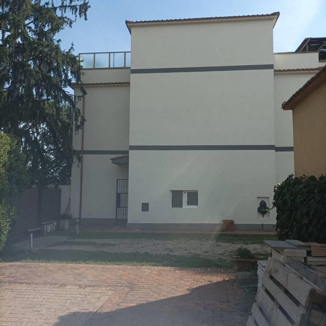 Al piano Primo abbiamo un ampio salone doppio con camino cucina abitabile 3 camere doppi servizi 3 balconi con un bellisimo gardino di 285 mq. ca. Al piano Secondo una mansarda da rifinire con 2 terrazzi panoramici castelli con vista a 360 gradi. Completano la proprieta un 2 box di proprieta con 2 posti scoperti. Contratto uso abitazione 3+2 Euro 1.800 solo referenziati