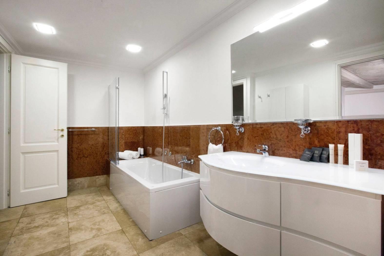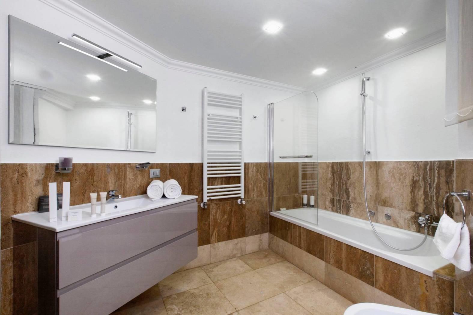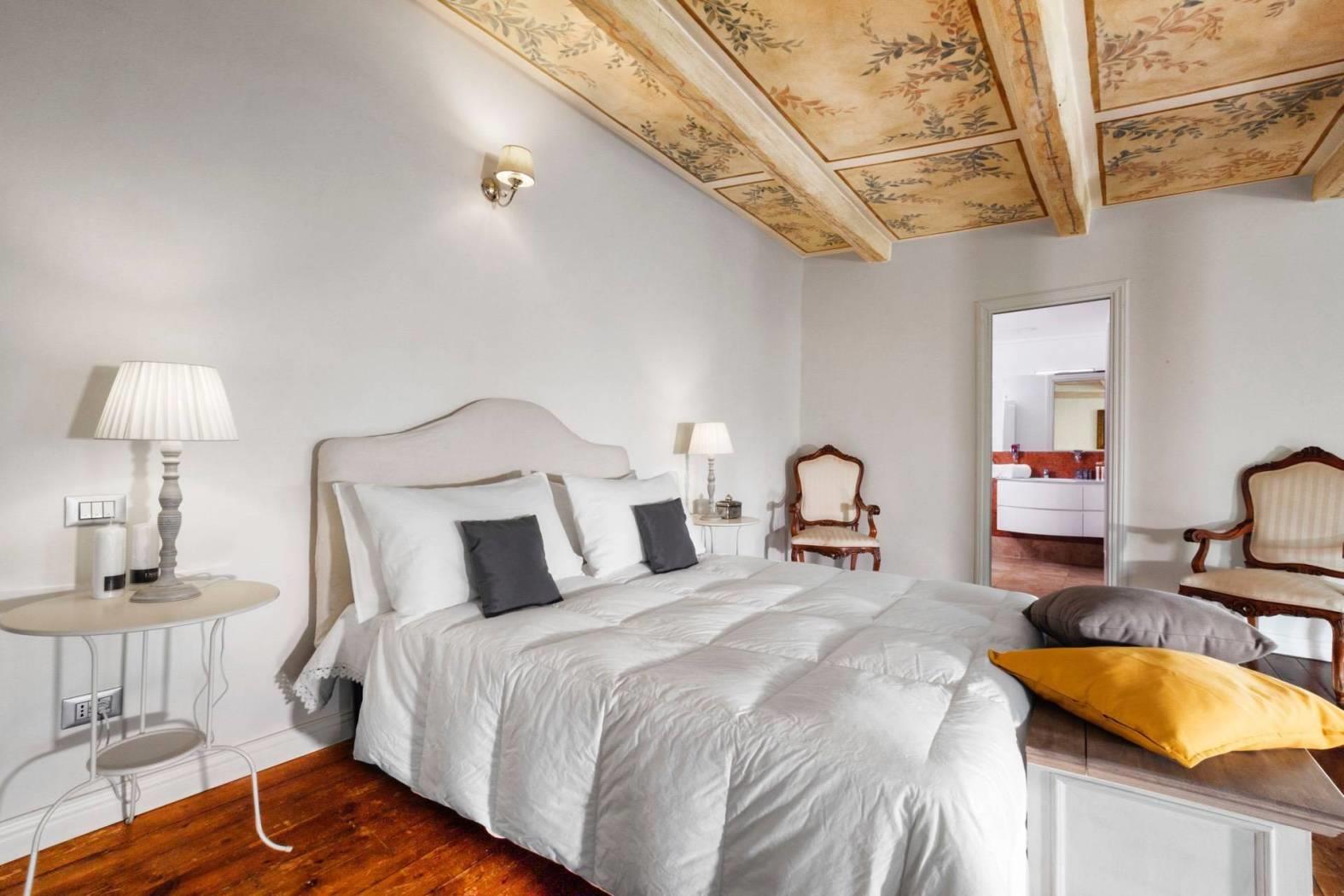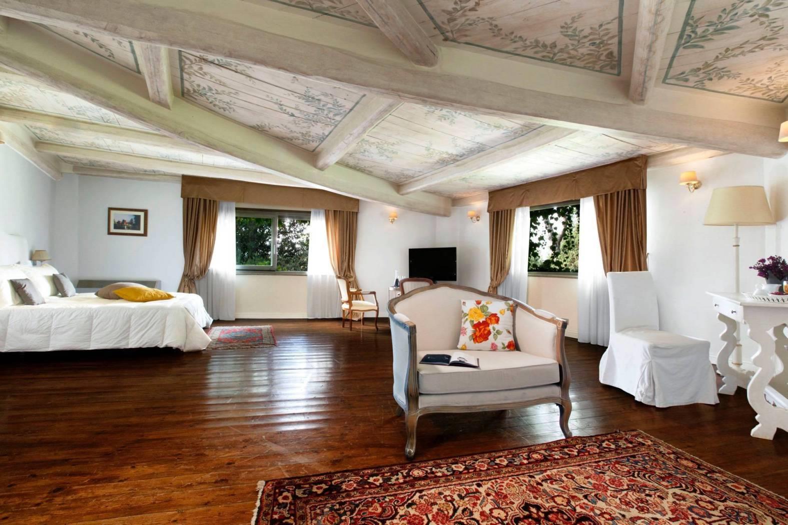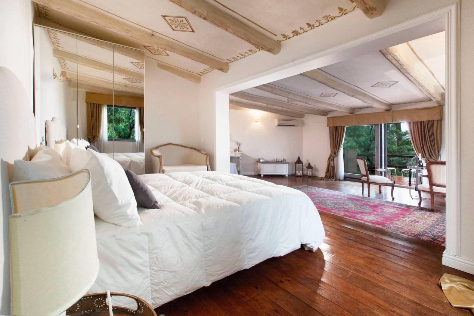 Nel piano superiore, collegato agli altri piani con una comoda scala e un ascensore, si aprono le tre camere da letto padronali, di ampia metratura, tutte con un servizio en suite di circa 10 mq. Tutte le camere hanno armadi a muro e spazi esterni/ terrazzi.
