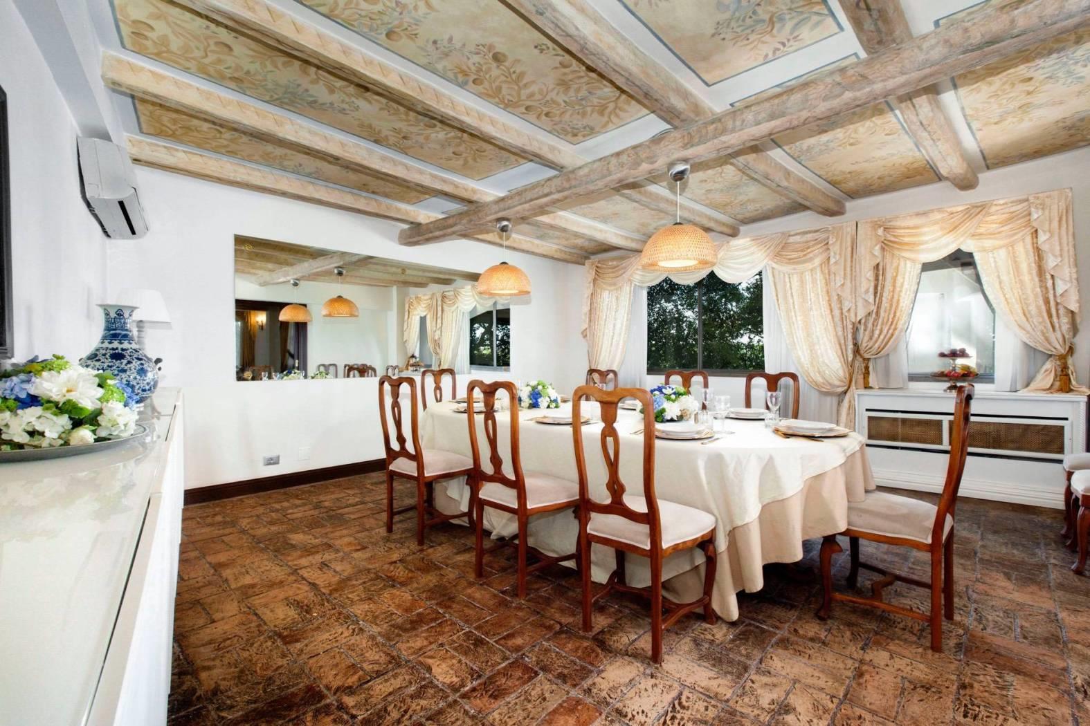 Ubicata in contesto esclusivo, avvolta dalla vegetazione del suggestivo parco condominiale con entrata privata, la villa ha 3 ingressi indipendenti e si disloca su 3 livelli.