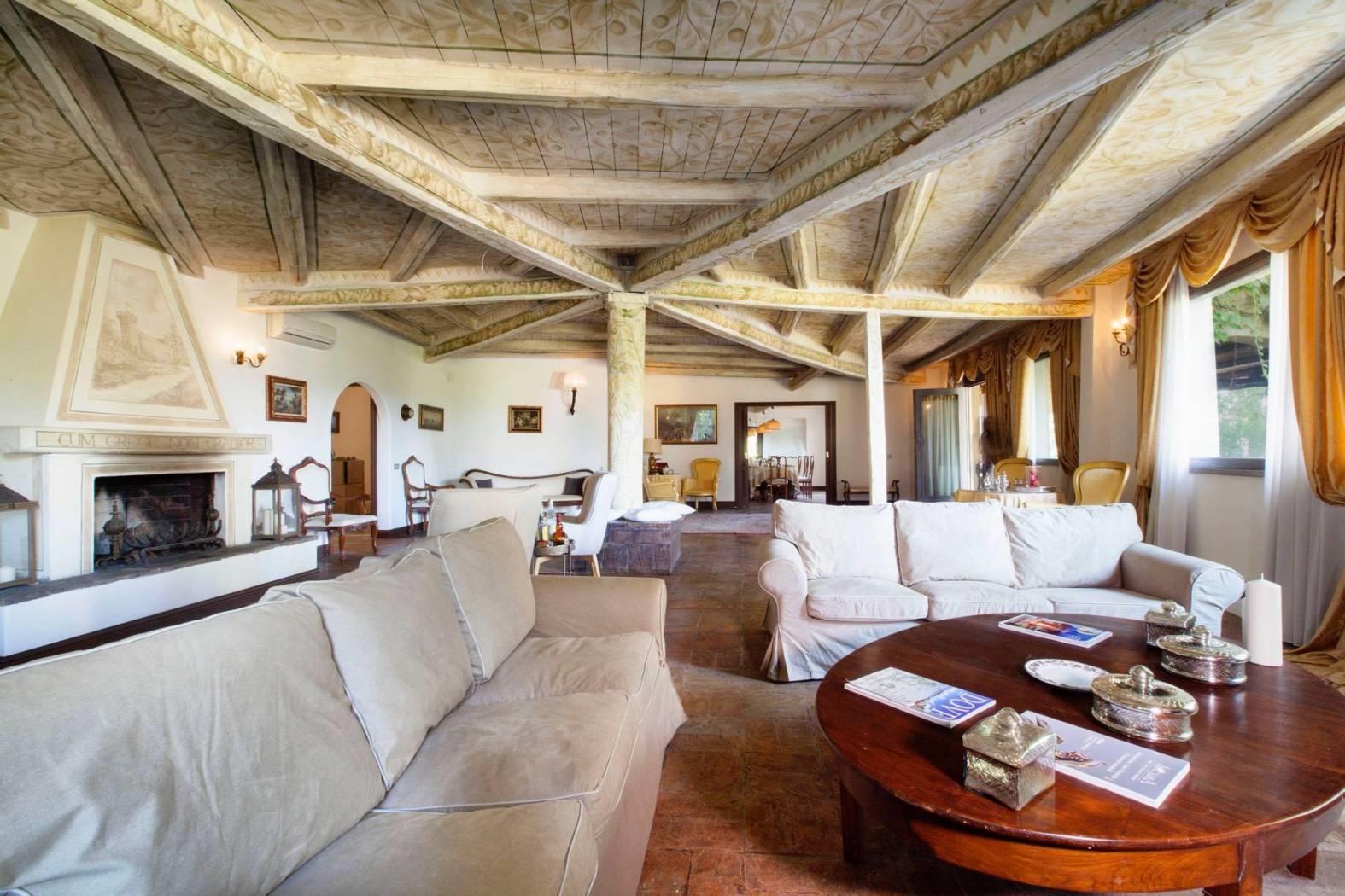 Percorsi pochi passi, passando accanto alle meravigliose fontane in pietra e salendo pochi gradini, si trova l'ingresso della villa. Al piano terra ai visitatori si apre un grande salone con camino secolare, soffitti dipinti, una sala da pranzo, una grande cucina, un servizio ospiti e una grande zona lavanderia.