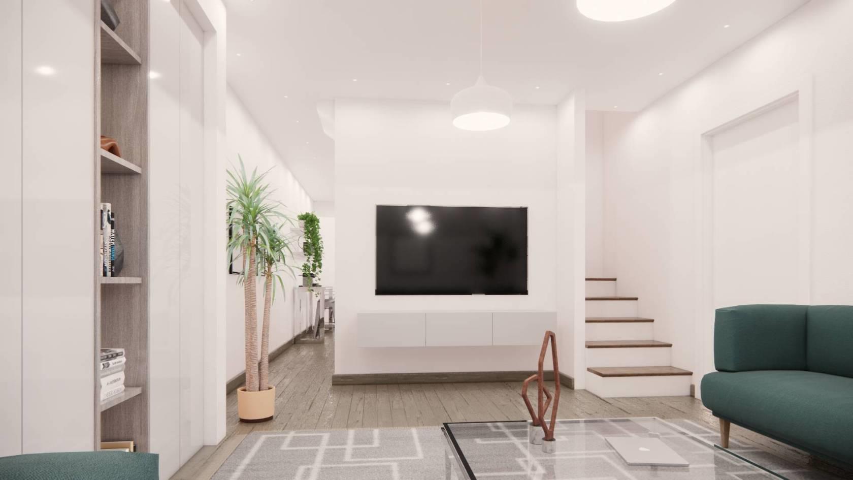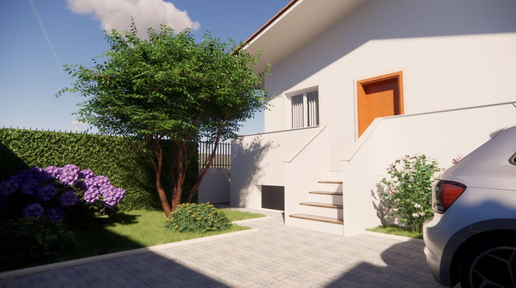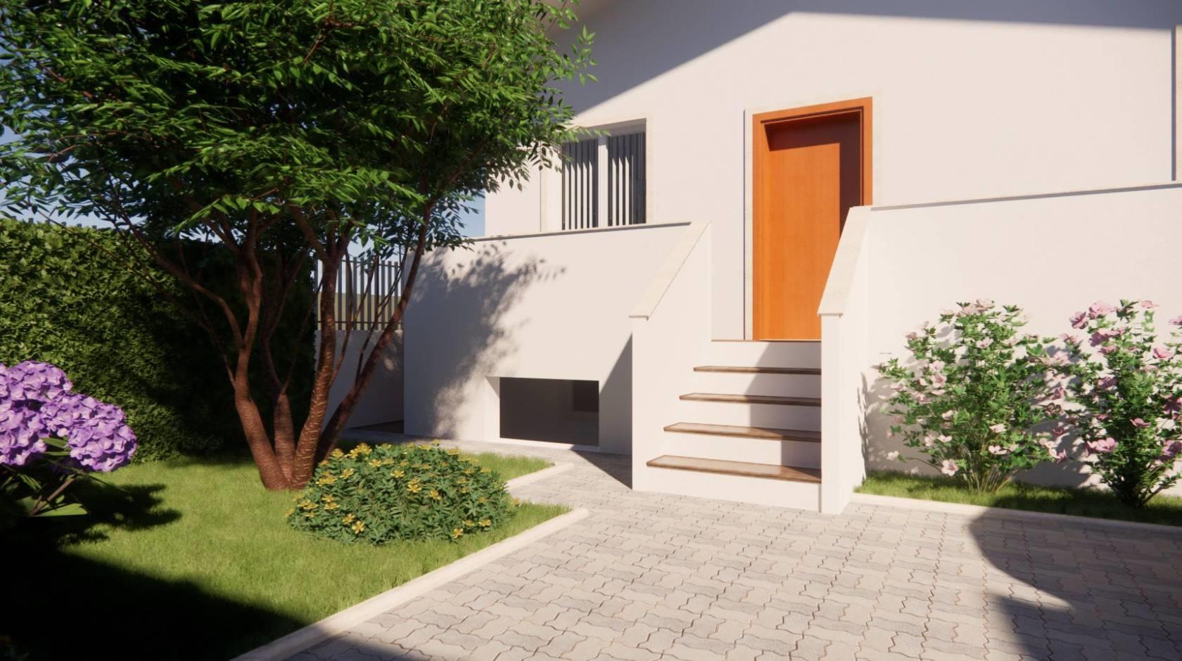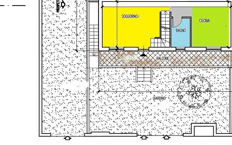 - piano rialzato: soggiorno, cucina, bagno, accesso al balcone di 20 mq e al giardino di 60 mq con accesso sia pedonale che con passo carrabile.