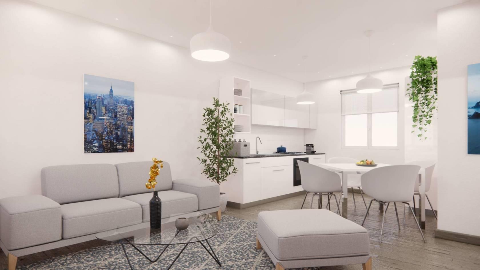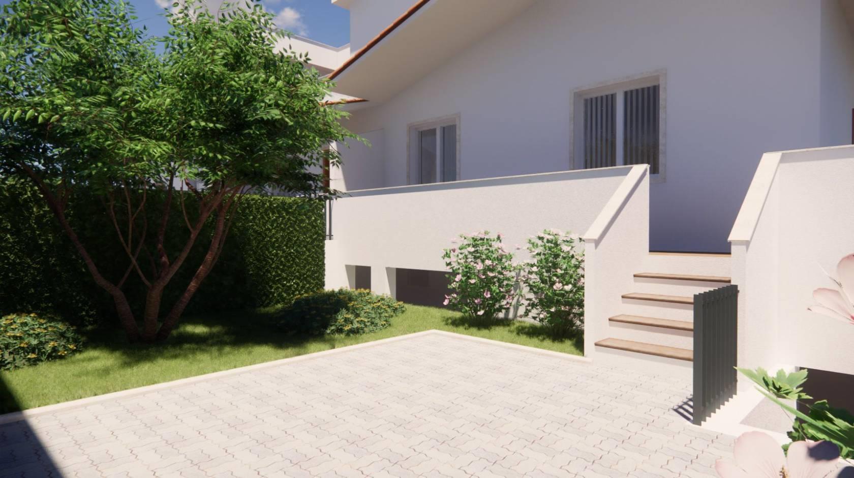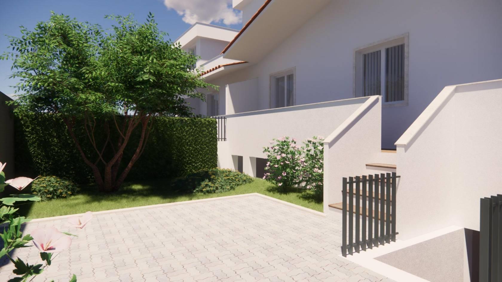 - piano rialzato: soggiorno con angolo cottura, bagno. Due balconi, accesso al giardino di 50 mq.