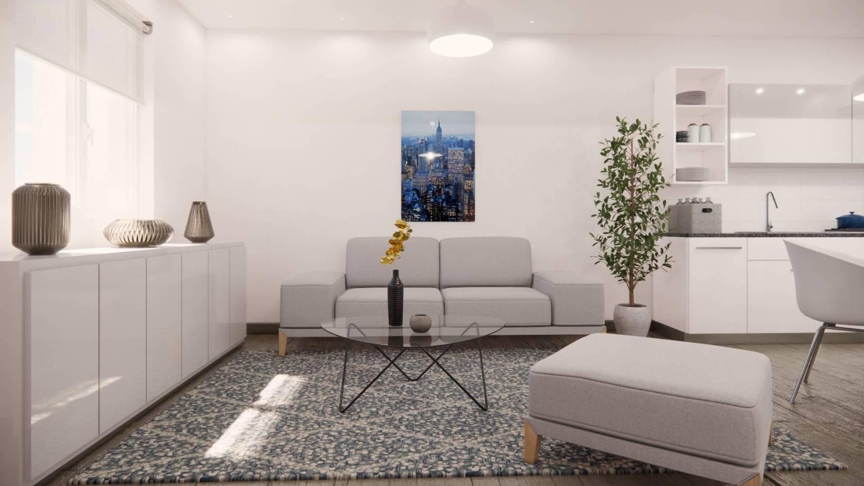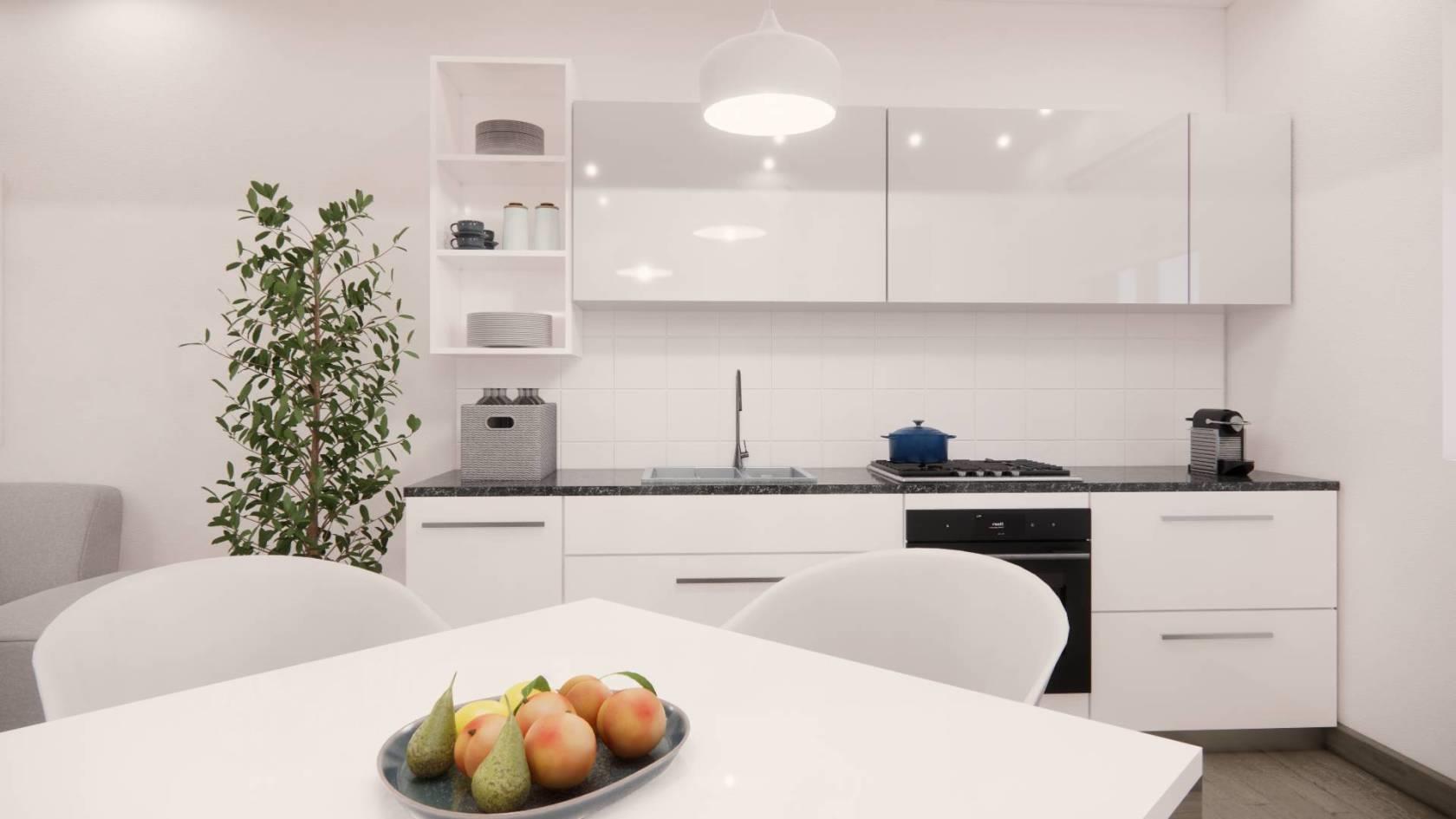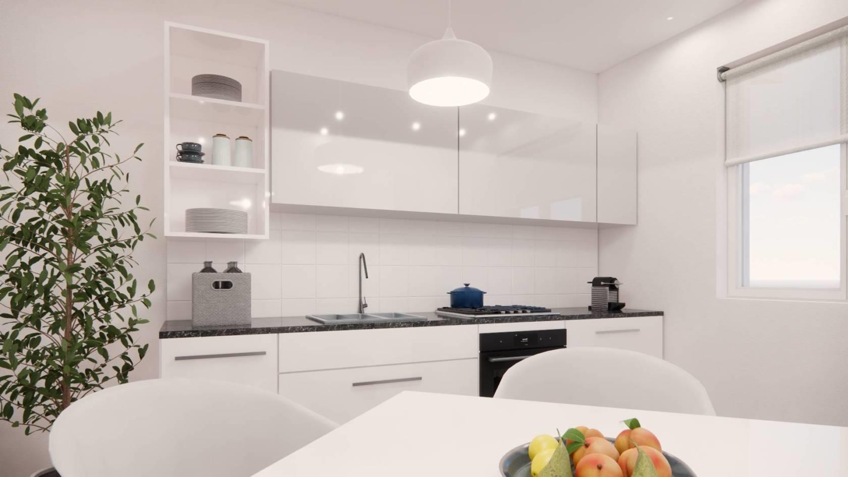 - piano rialzato: soggiorno con angolo cottura, bagno. Due balconi, accesso al giardino di 50 mq.