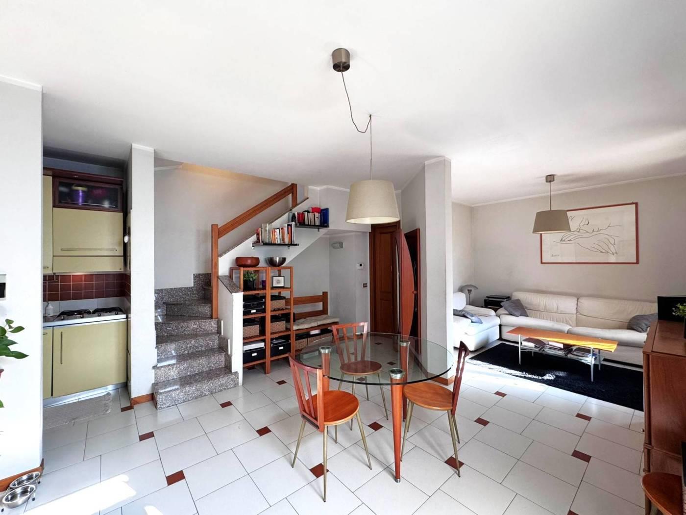 - Piano terra: soggiorno doppio a vista, con angolo cottura, bagno finestrato;