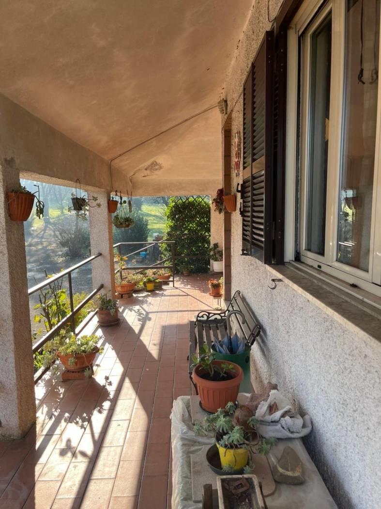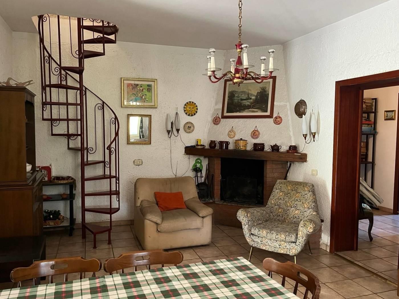A circa 6 Km da Colleferro, in contrada Le Cese, in un contesto di immobili a destinazione residenziale, proponiamo in vendita porzione di Bifamiliare plurilivello (piani S1, T e 1) e terreno completamente recintato (lotto, compreso il fabbricato, 2600 mq totali circa). L'accesso alla proprietà avviene, rispetto alla strada principale, tramite cancello non automatizzato, sia carrabile che pedonale. L'ingresso al fabbricato è preceduto da un'ampia zona porticata angolare con al piano terra rialzato (mq 69 ca - in buono stato): ingresso. salone con camino, cucinotto, disimpegno, camera, studio, 2 bagni e scala a chiocciola per il piano superiore. Piano Primo completamente da ristrutturare e, in parte, da rifinire (mq 69 ca). Al Piano seminterrato, garage e cantina