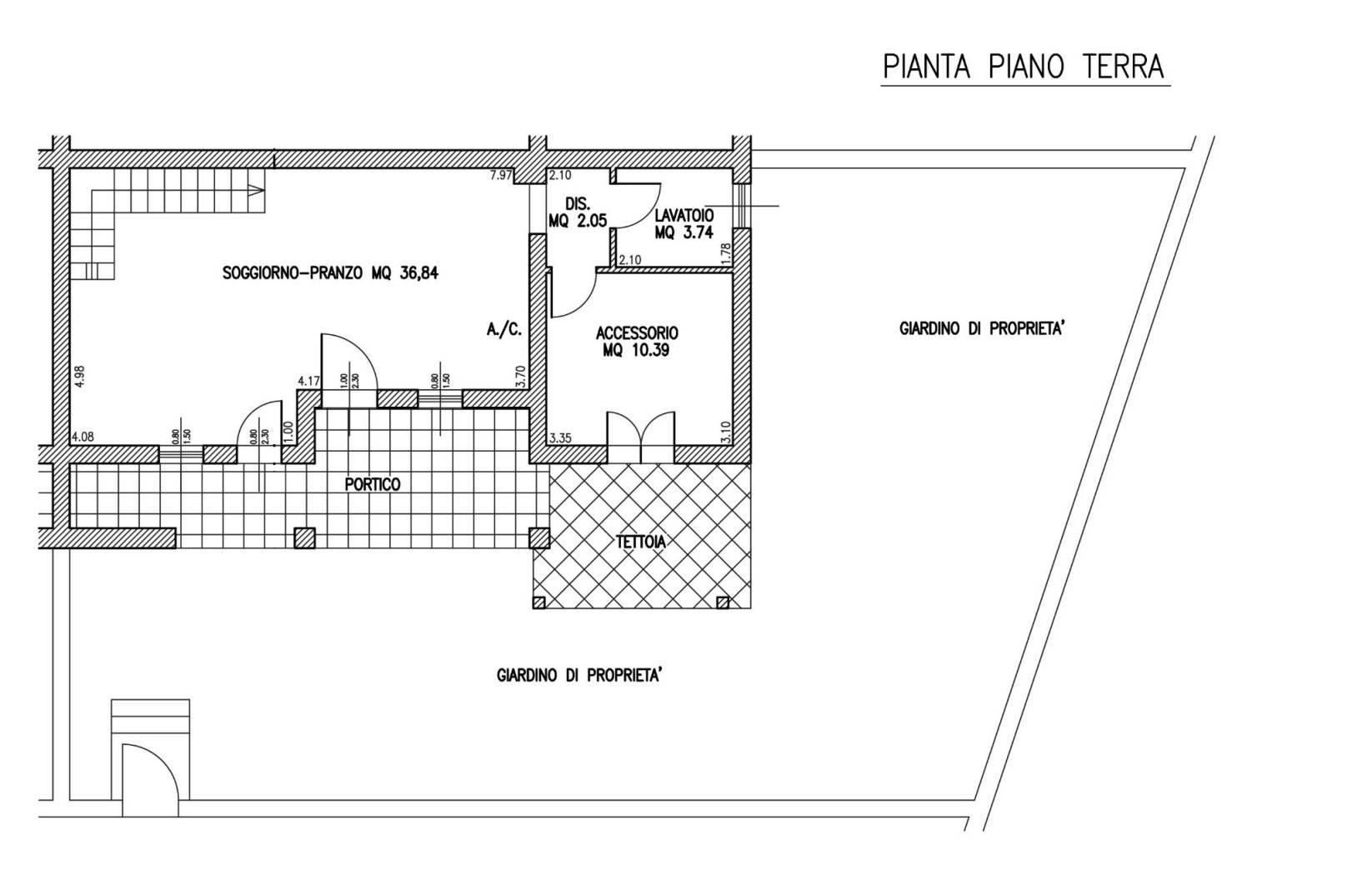 Piano terra composto da un ampio salone doppio con camino e zona living, una zona accessoria e un lavatoio che offrono ulteriori possibilità di personalizzazione degli spazi.