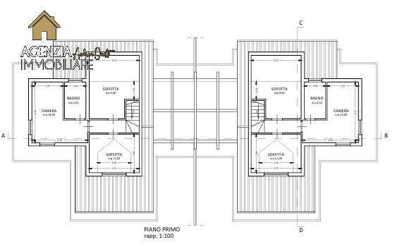 - **Piano Primo:** Si sviluppano le camere da letto con un bellissimo tetto in legno a vista: camera matrimoniale spaziosa con vista panoramica; secondo bagno comodo; camera aggiuntiva con abbaino perfetta come studio o stanza degli ospiti e cameretta con velux adatta ai bambini.
