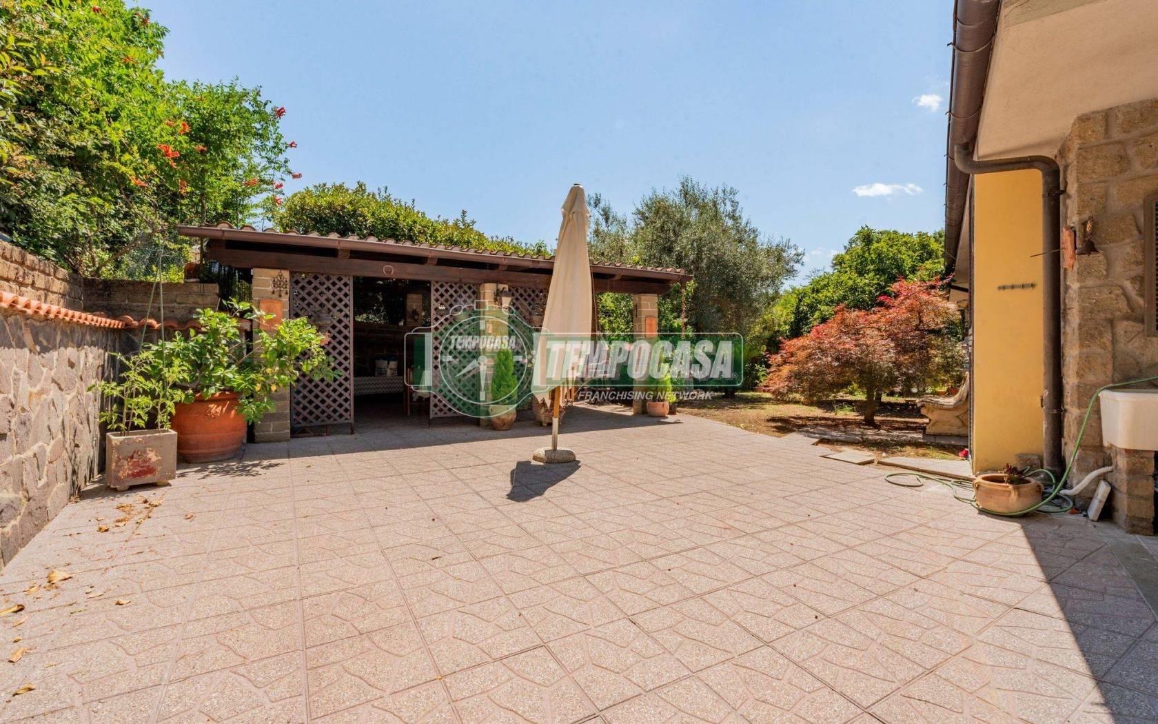 Gli spazi esterni includono un ampio terrazzo e un patio coperto, ideali per godere della tranquillità del giardino.