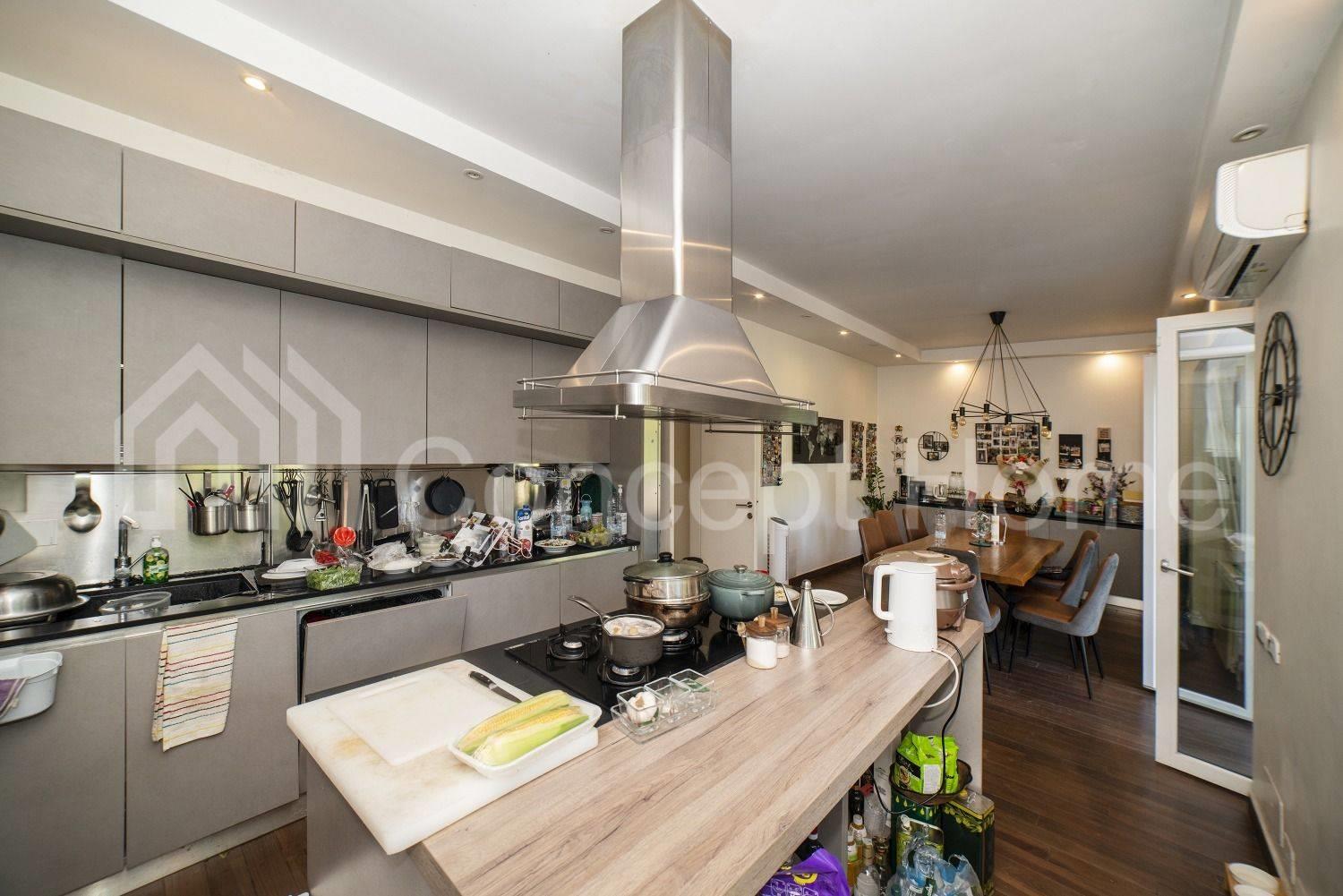 L'immobile al suo interno è completamente ristrutturato ed è dotato di pavimentazione in parquet, controsofitto con illuminazione faresti a Led, camino a bioetanolo, scale in marmo e parquet, tutti i servizi arredati con sanitari di pregio, riscaldamento autonomo con radiatori, aria condizionata canalizzata con condizionatori inverter caldo / freddo, infissi in doppio vetro/pvc con serrande elettriche e grate di sicurezza, terrazzi con pavimenti in gres porcellanato tutti dotati di acqua e illuminazione, impianto di sicurezza con allarme, porta blindata e fibra ottica.