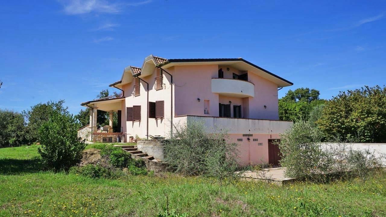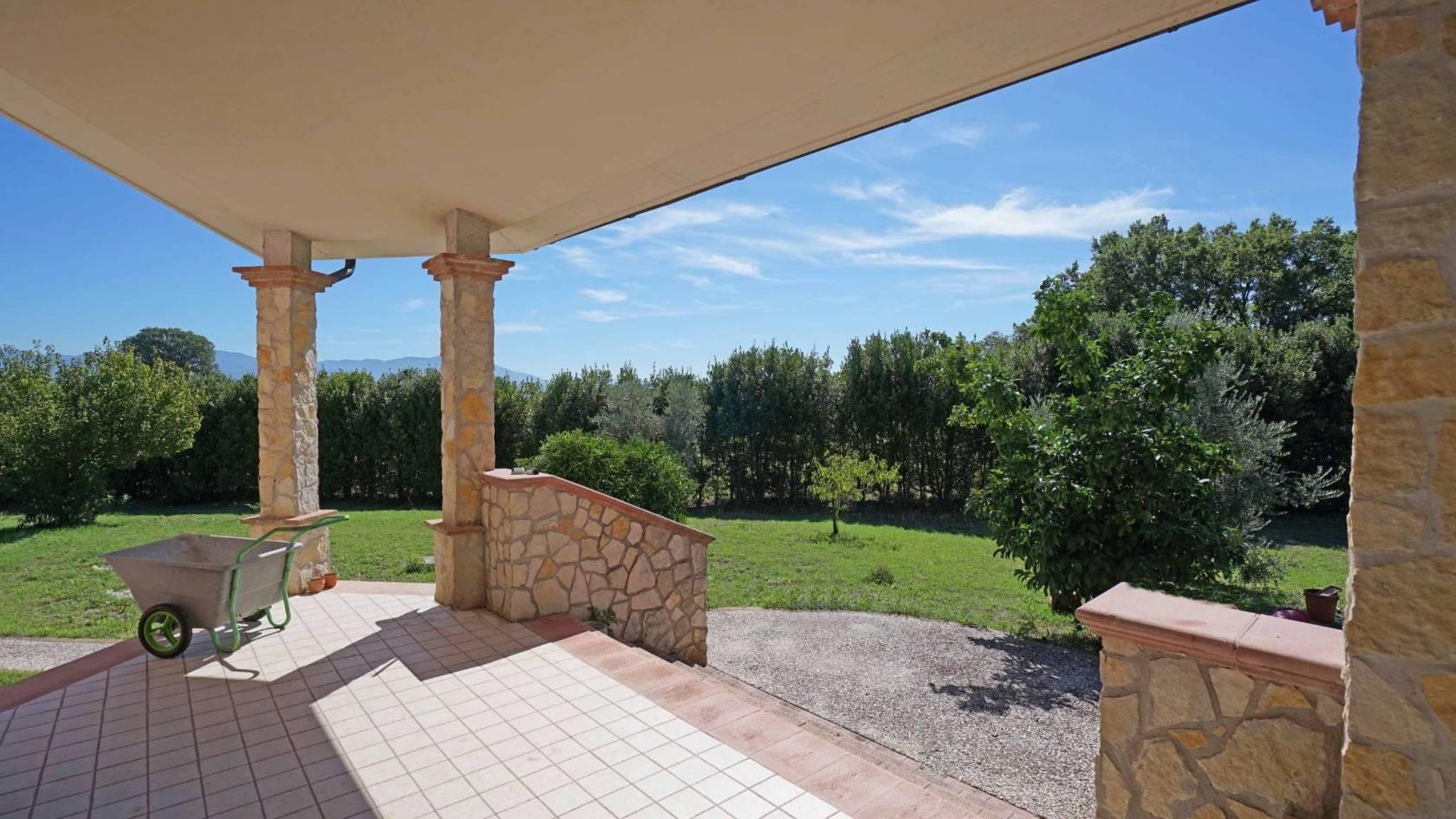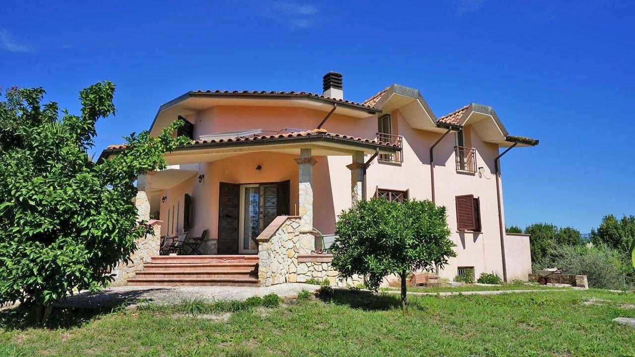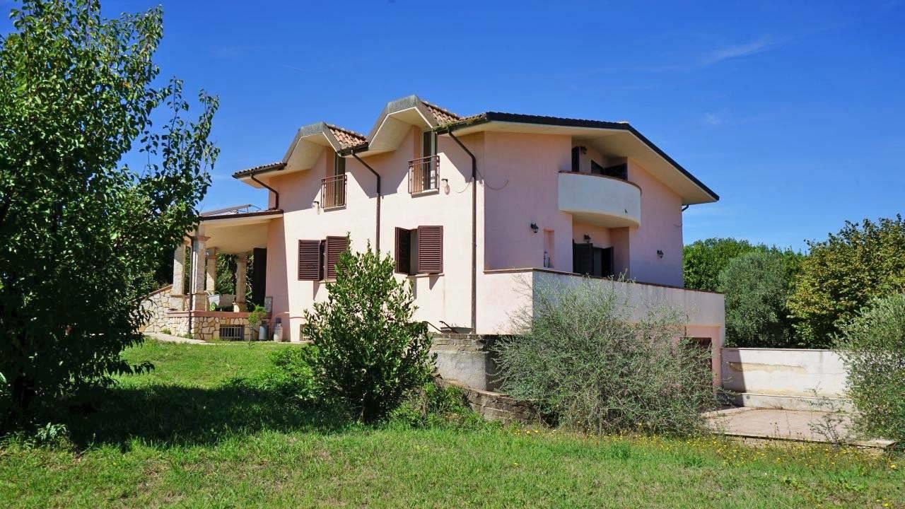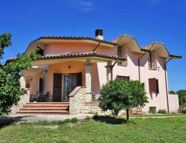 La proprietà è ubicata in Via San Sebastiano, prevalentemente dominata dalla lunga pista ciclabile che percorre tutto il paese, ville di vario genere, parchi giochi per bambini, aree verdi a disposizione della comunità ed infine il panorama, una finestra sulla Sabina. Entrando dal cancello colpisce subito lo stile dell’immobile, con i suoi ampie portici, il giardino circostante adornato da piante e alberi per un totale di complessivi 2.500 mq circa. Costruita tra il 2000 e il 2005 gode di tutti i vantaggi di una recente costruzione.