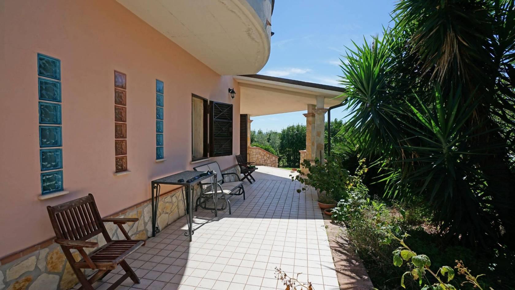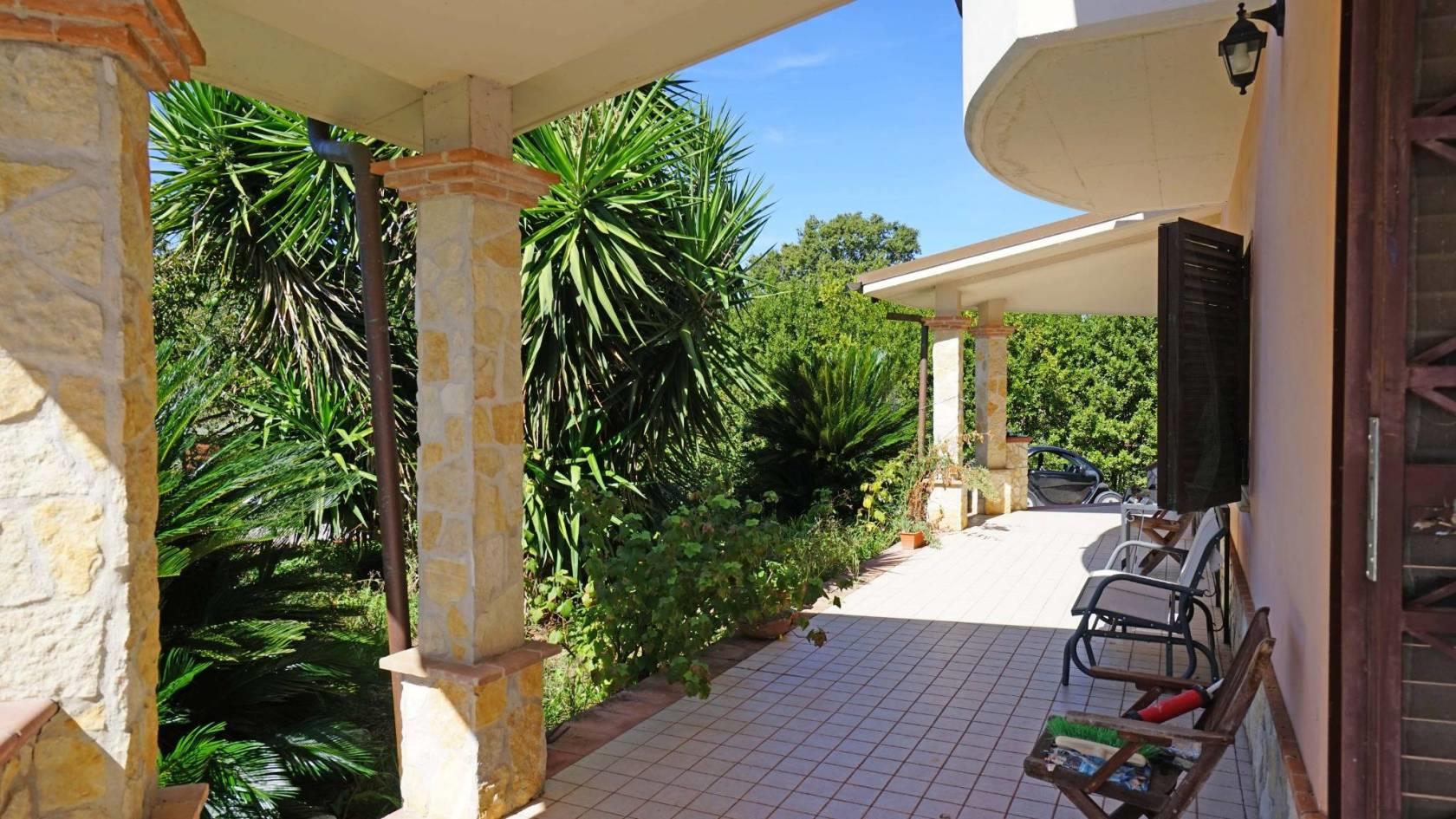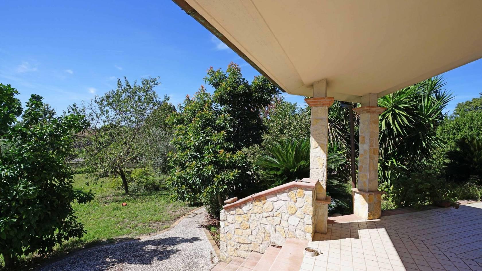 La proprietà è ubicata in Via San Sebastiano, prevalentemente dominata dalla lunga pista ciclabile che percorre tutto il paese, ville di vario genere, parchi giochi per bambini, aree verdi a disposizione della comunità ed infine il panorama, una finestra sulla Sabina. Entrando dal cancello colpisce subito lo stile dell’immobile, con i suoi ampie portici, il giardino circostante adornato da piante e alberi per un totale di complessivi 2.500 mq circa. Costruita tra il 2000 e il 2005 gode di tutti i vantaggi di una recente costruzione.