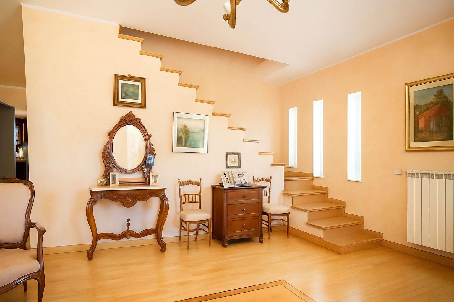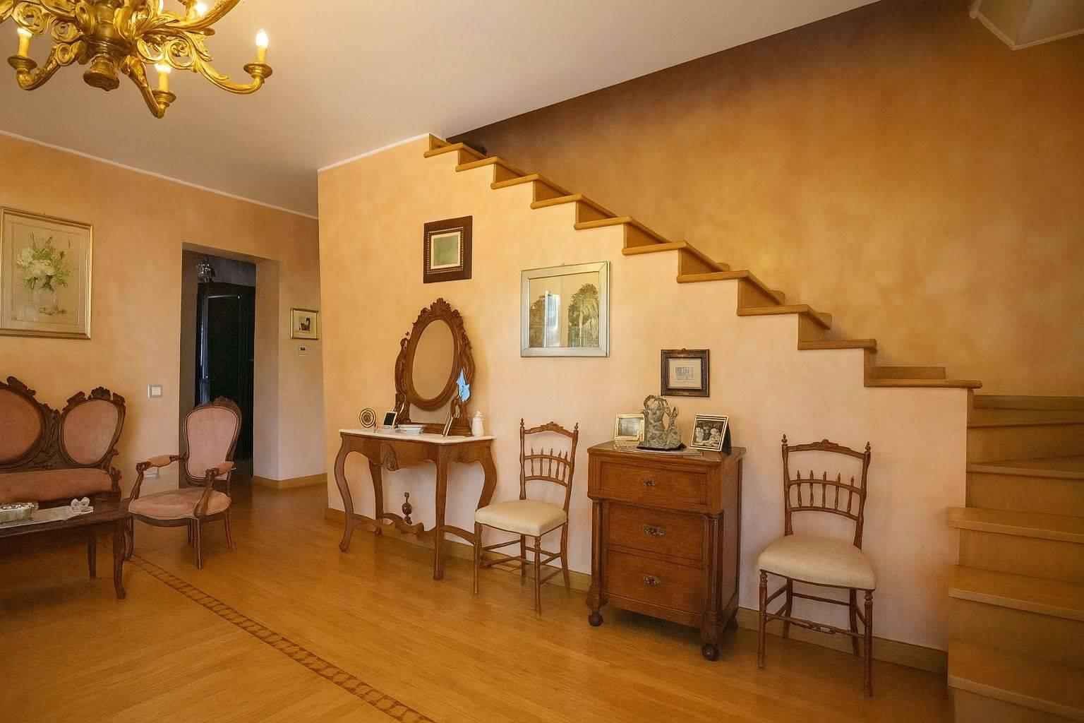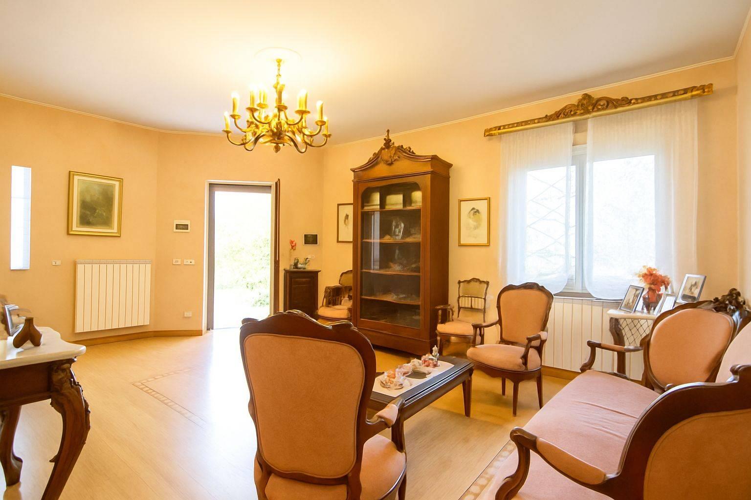 La Villa ha l'accesso diretto dalla strada e la sua metratura complessiva è di 400 mq circa escludendo i balconi/portici, ed è divisa su tre livelli. Il piano terra è composto da: salone doppio con ampie finestre dalla quale si può godere del panorama circostante, cucina abitabile, stanza da adibire a camera da letto o studio e bagno. Al piano Primo troviamo un ampio ambiente adibito a studio, tre stanze e due bagni di cui uno all'interno della camera più grande. Il piano seminterrato è composto da un’ulteriore salone con camino, angolo cottura, due bagni, tre ampie stanze, una grande cantina ed un garage. Tutti gli ambienti risultano molto luminosi grazie alle ampie finestre e all’esposizione che gode l'immobile.