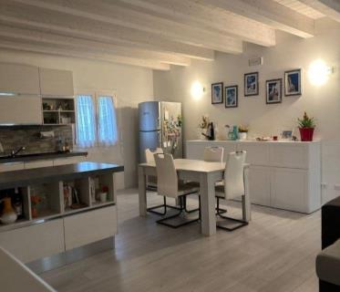 Al piano terra ampio salone con camino, una cucina all'americana completamente di valore servizio con vero marmo.