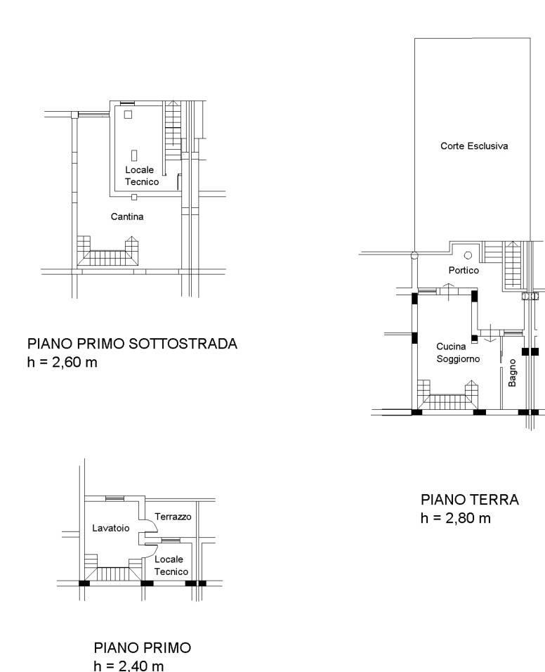 Le ville sono così composte: ingresso indipendente nel giardino privato di 60mq, portico di 15mq, possibilità di doppia entrata, 3 livelli divisi in piano seminterrato di 40mq dove c'è la possibilità di fare un angolo cottura, un bagno ed una camera da letto matrimoniale; piano terra rialzato di 35mq dove abbiamo, il soggiorno con angolo cottura ed un bagno completo finestrato, ed infine al piano primo c'è una camera da letto matrimoniale, una stanza ottima per poter fare un bagno o una cabina armadio ed un terrazzo che affaccia sul giardino di pertinenza.