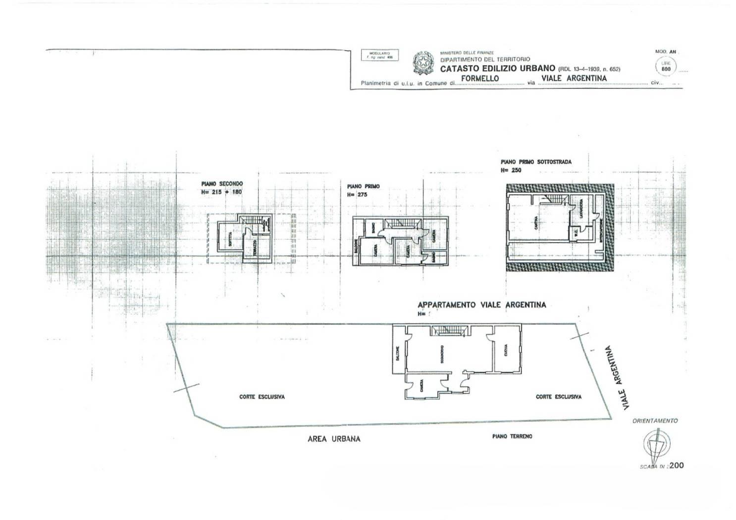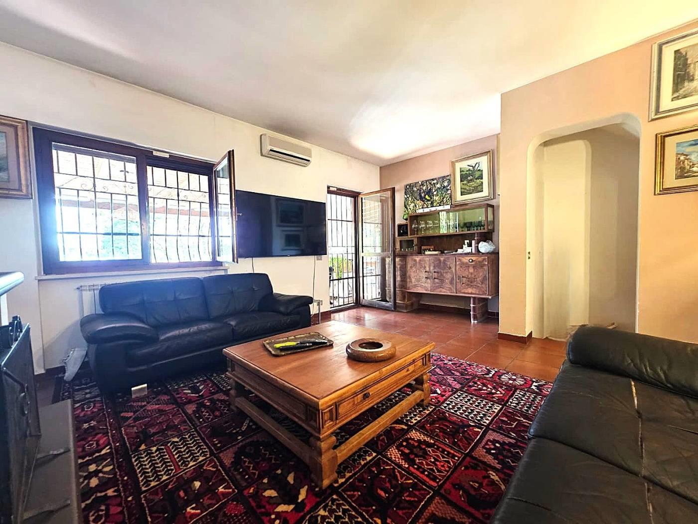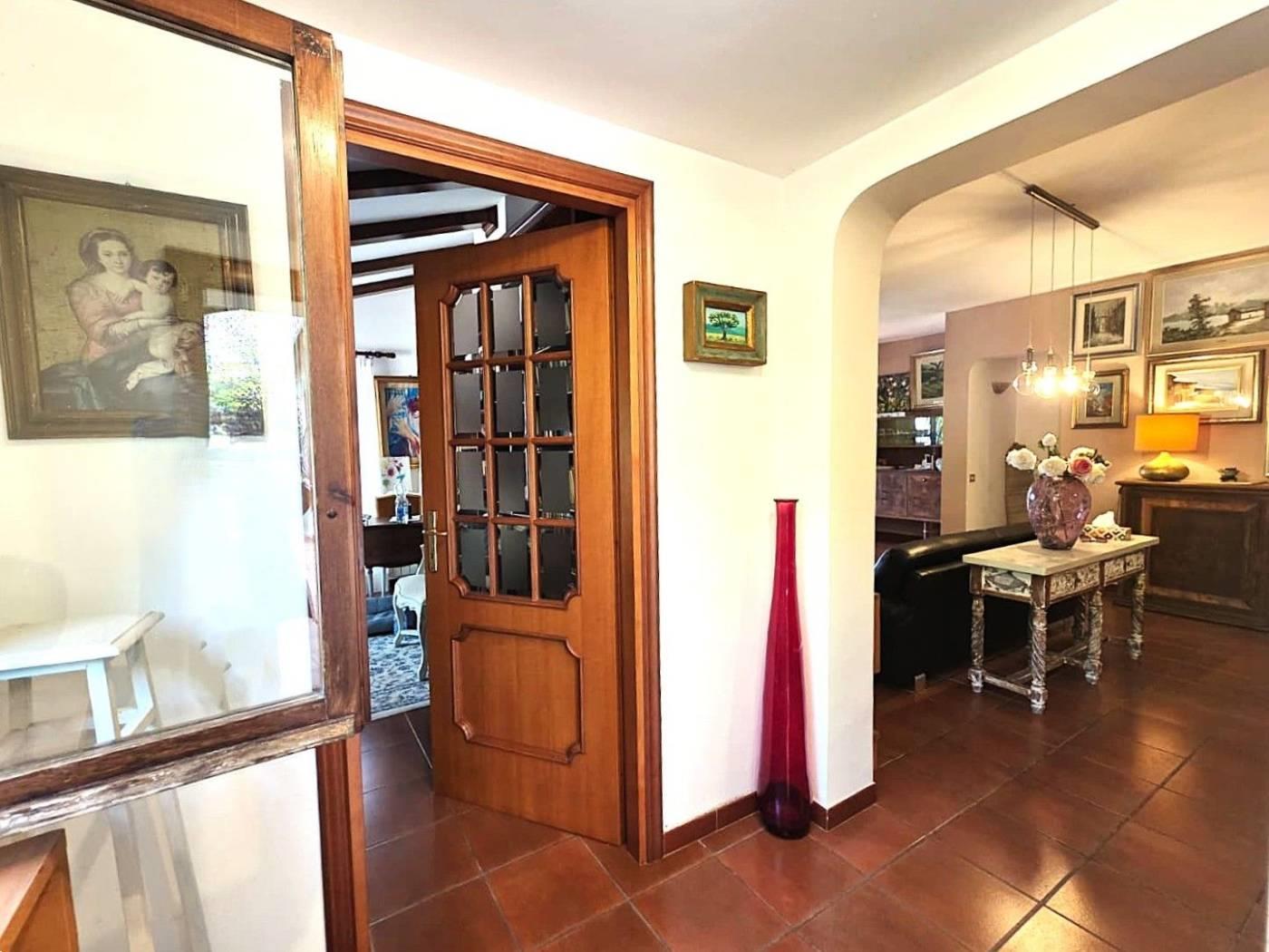 Al piano terreno si trova la zona giorno composta da un ampio ingresso, da un salone doppio con zona pranzo, uno studio, dall’ampia cucina abitabile/tinello ed una terrazza; al primo piano vi sono tre camere, due bagni ed un balcone panoramico; al piano seminterrato anch’esso con uscita sul giardino: ampia taverna con giardino a livello, camera bagno/lavanderia e box auto doppio. Completa la proprietà al secondo piano una camera mansardata. Il giardino con accesso pedonale da Viale Argentina e carrabile da strada privata, circonda la proprietà su tre lati.