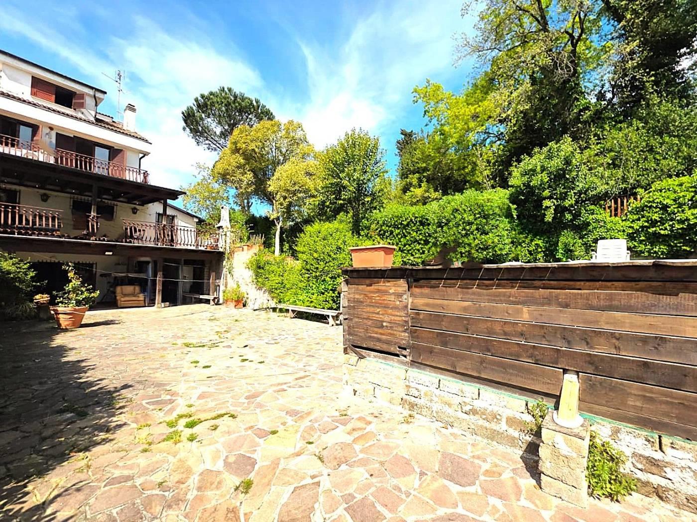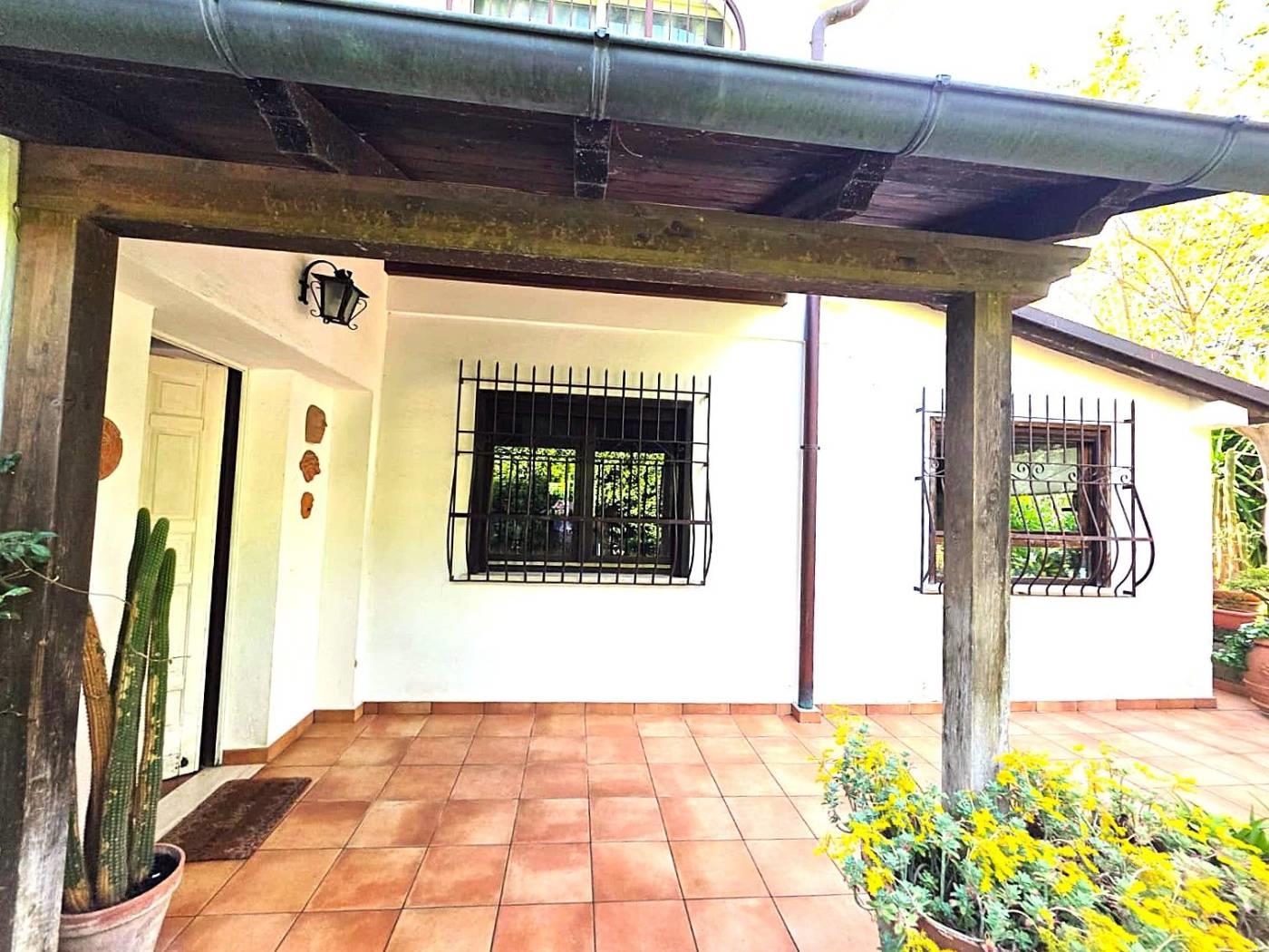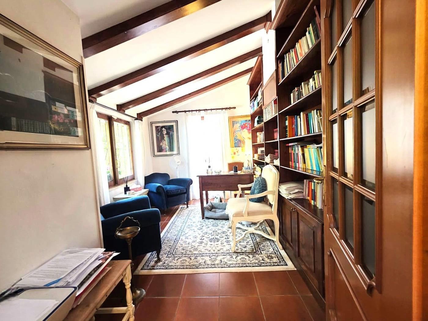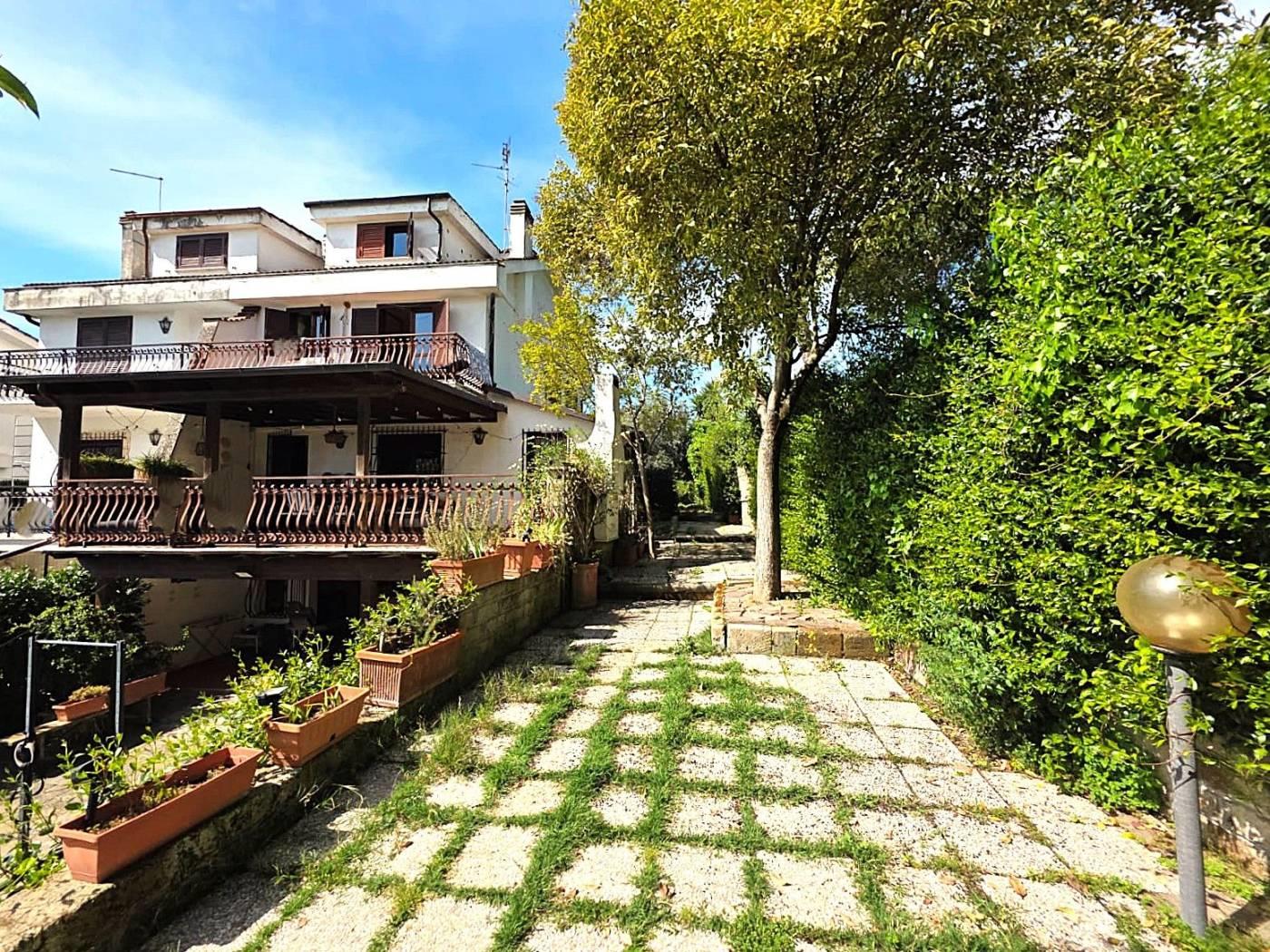 Al piano terreno si trova la zona giorno composta da un ampio ingresso, da un salone doppio con zona pranzo, uno studio, dall’ampia cucina abitabile/tinello ed una terrazza; al primo piano vi sono tre camere, due bagni ed un balcone panoramico; al piano seminterrato anch’esso con uscita sul giardino: ampia taverna con giardino a livello, camera bagno/lavanderia e box auto doppio. Completa la proprietà al secondo piano una camera mansardata. Il giardino con accesso pedonale da Viale Argentina e carrabile da strada privata, circonda la proprietà su tre lati.