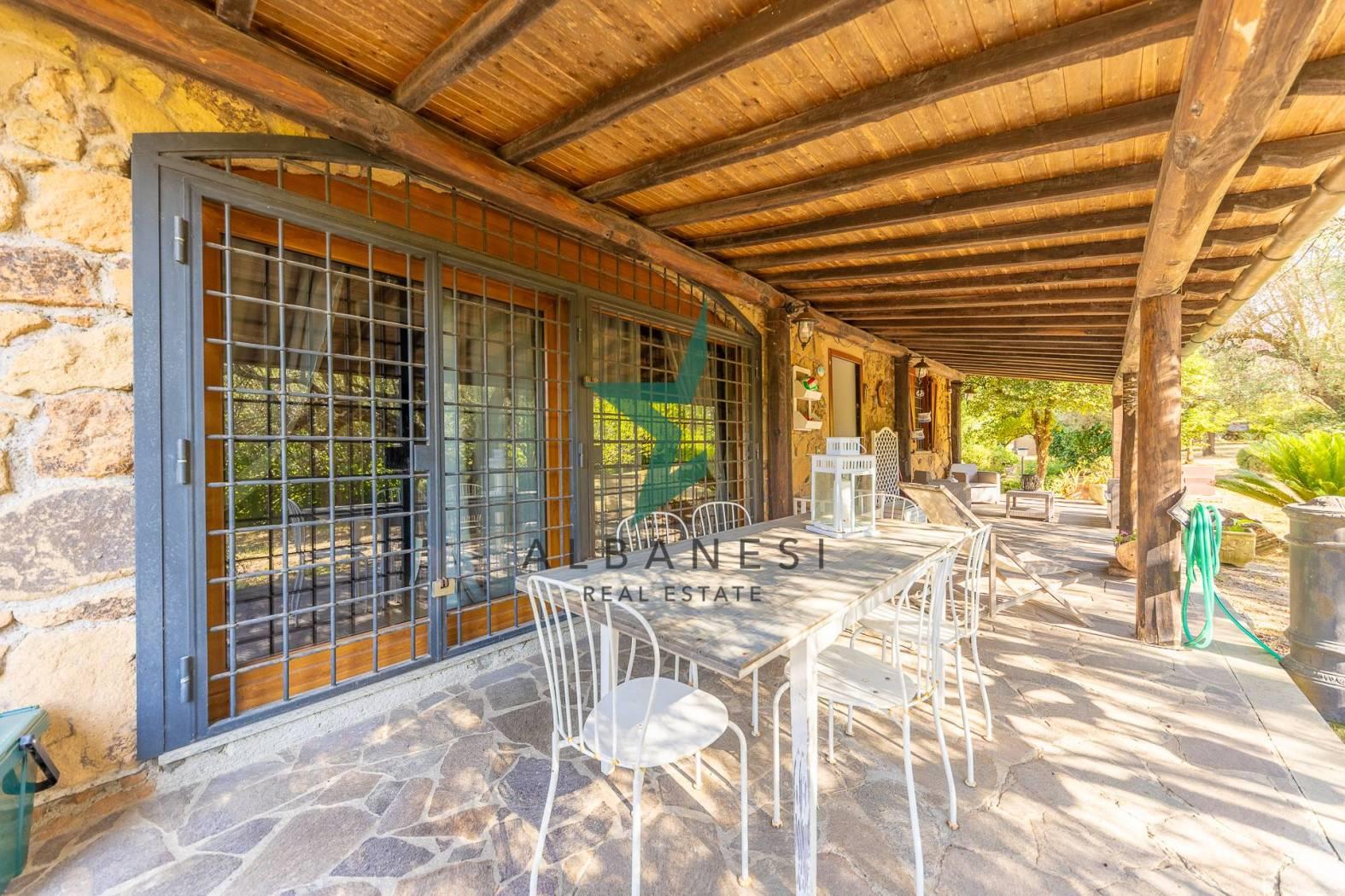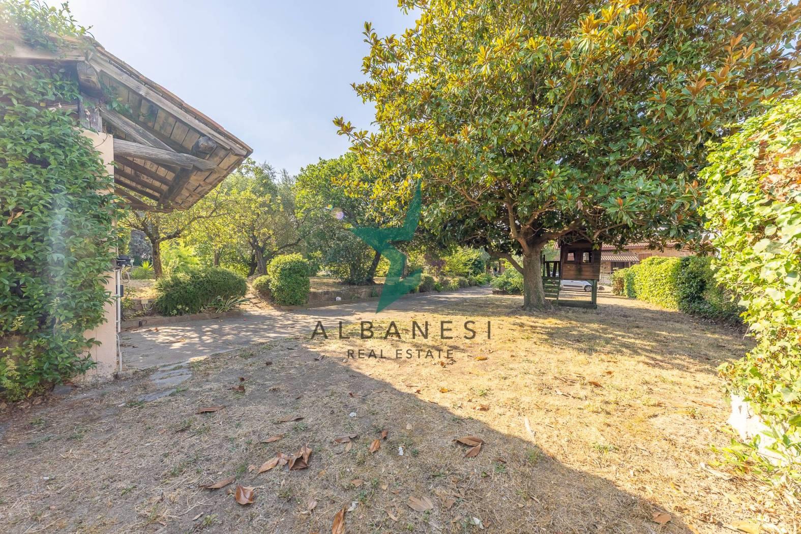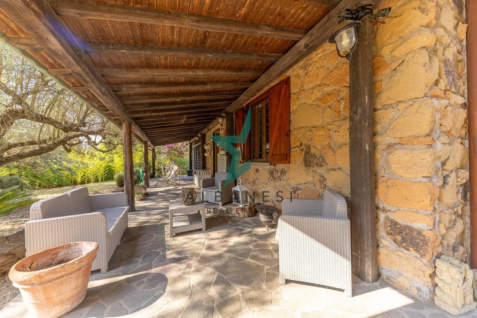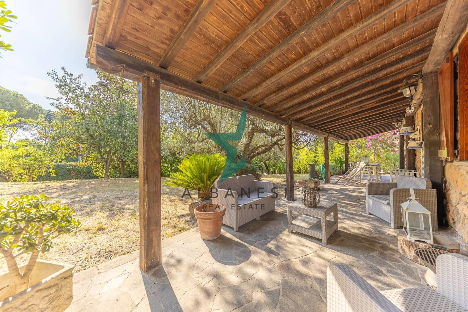 Porzione di villa bifamiliare di 184 mq ca su unico livello con 2.000 mq di giardino e box auto di 30 mq ca cosi composta: Ampio portico, Ingresso, Cucina abitabile, Soggiorno, zona living, 3 camere, 2 bagni, ripostiglio.
