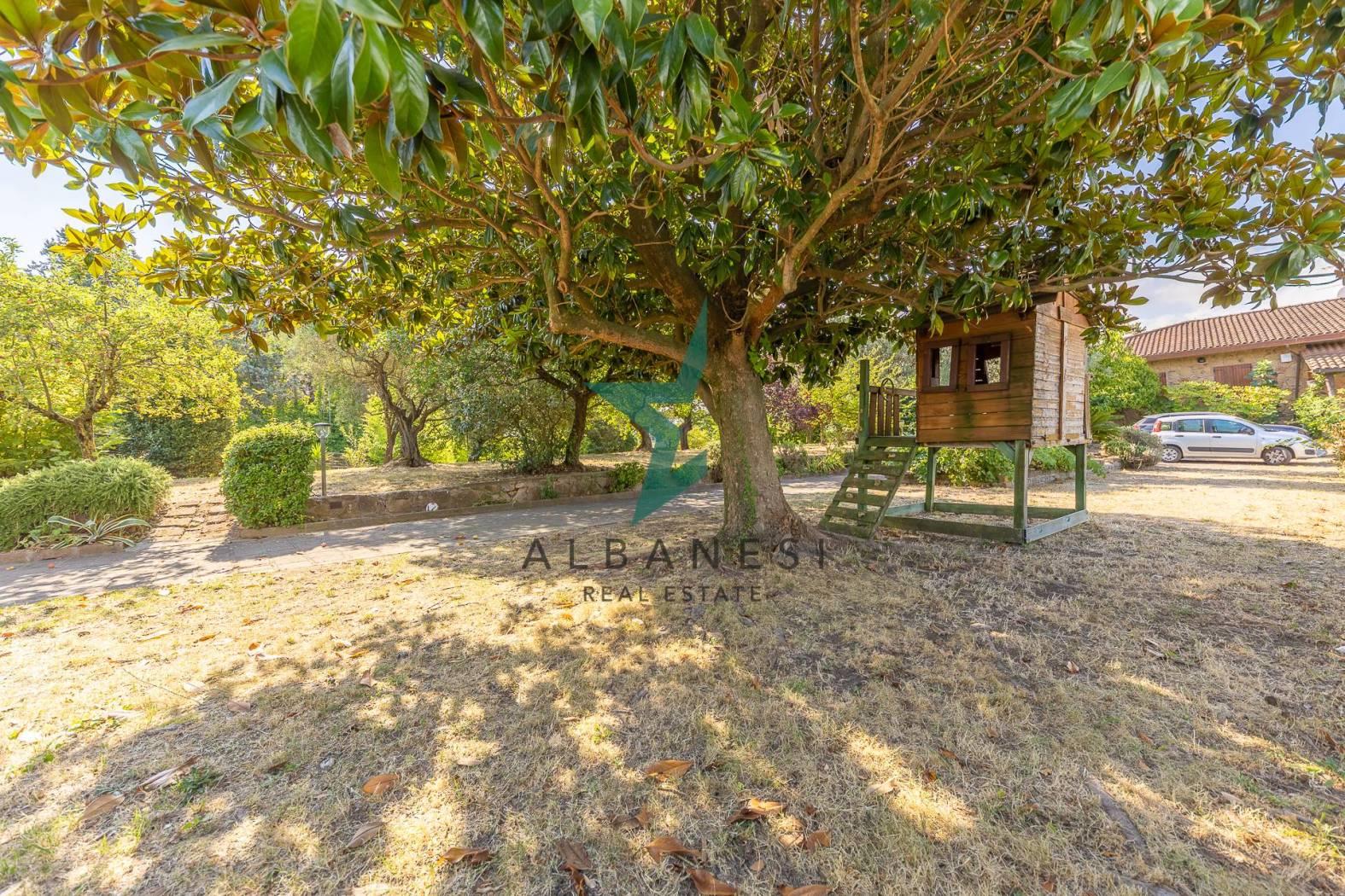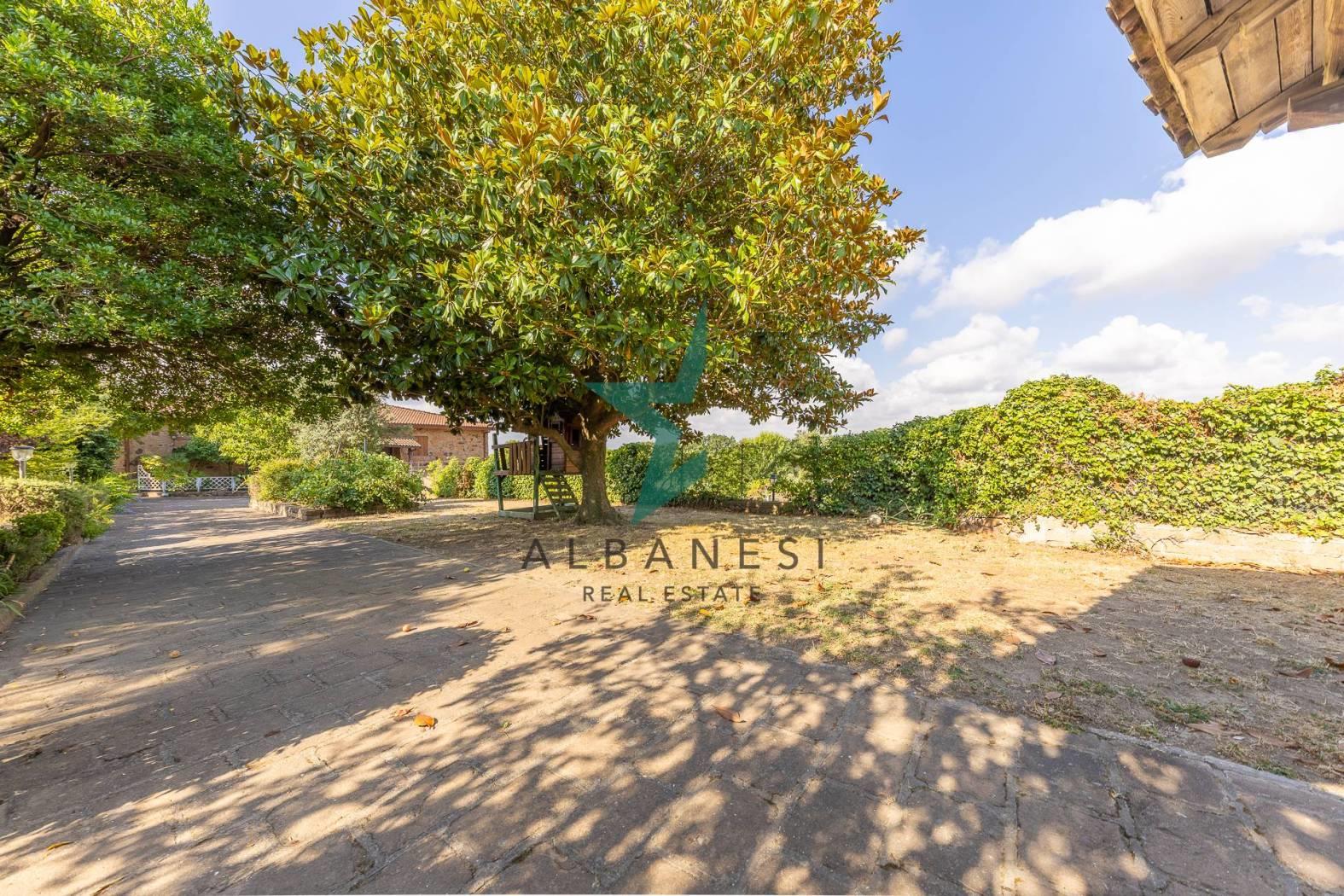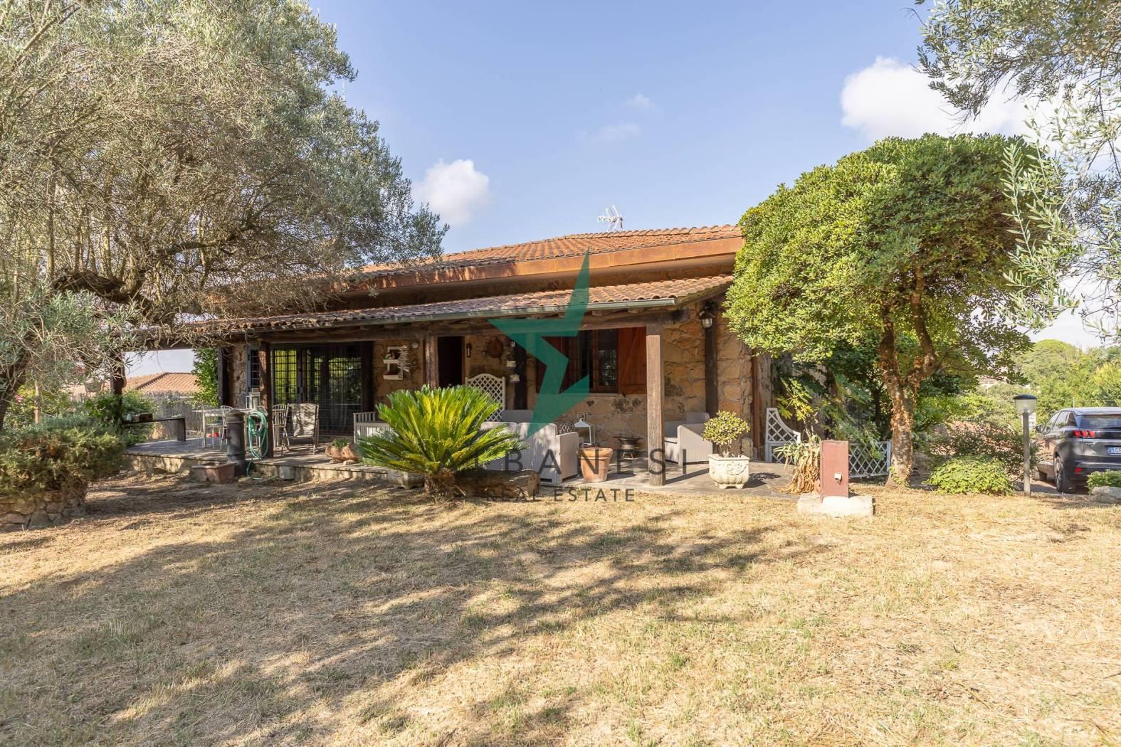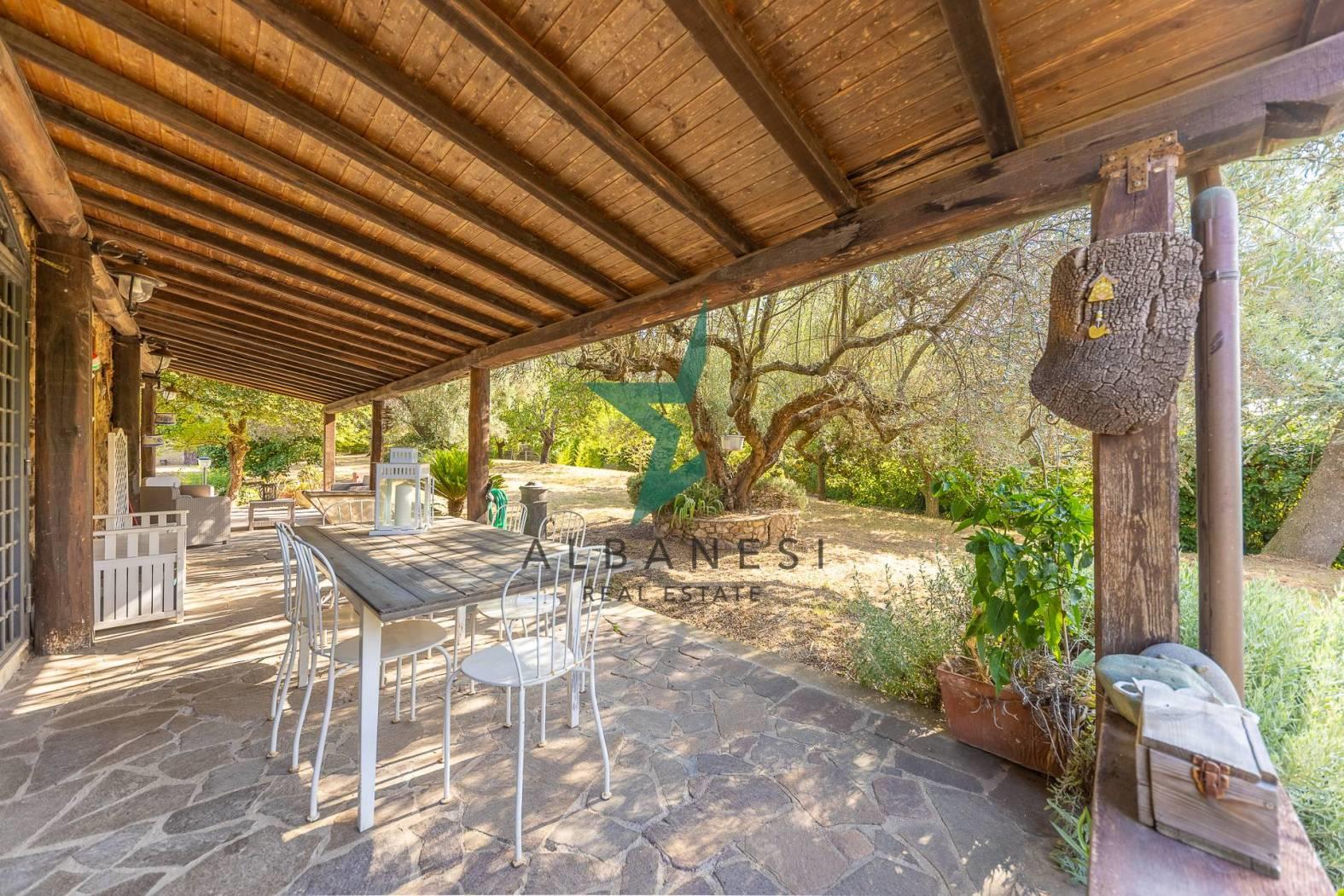 Porzione di villa bifamiliare di 184 mq ca su unico livello con 2.000 mq di giardino e box auto di 30 mq ca cosi composta: Ampio portico, Ingresso, Cucina abitabile, Soggiorno, zona living, 3 camere, 2 bagni, ripostiglio.