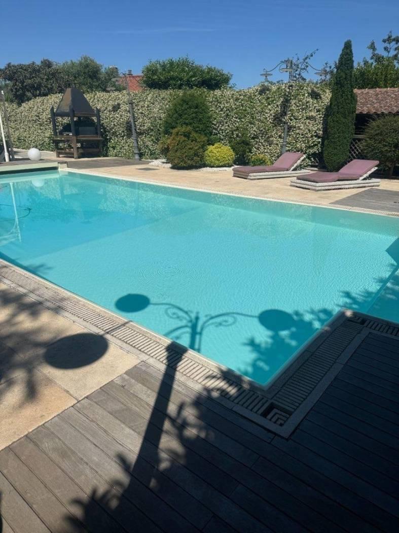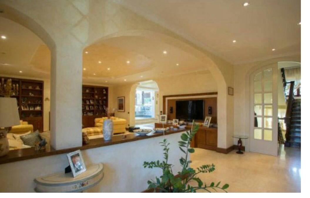 Frascati via Tuscolana/via Valle S. Ignazio, proponiamo la vendita di una villa di mq. 415 recentemente ristrutturata, che si sviluppa su tre livelli. Al piano terra troviamo un portico, ingresso, salone doppio con camino e terrazzo, grande cucina angolare, sala da pranzo, studio ed un servizio; al primo piano si trovano tre camere da letto con relativi spogliatoi, doppi servizi, di cui uno en- suite; al piano interrato, una cameretta con bagno di servizio, lavanderia, centrale termica ed un appartamento con ingresso indipendente composto da soggiorno con angolo cottura, due camere e doppi servizi. Completano la proprieta un'ampia area esterna alberata di circa 700 mq., di cui circa 120 mq. dedicata al parcheggio delle auto ed una piscina.