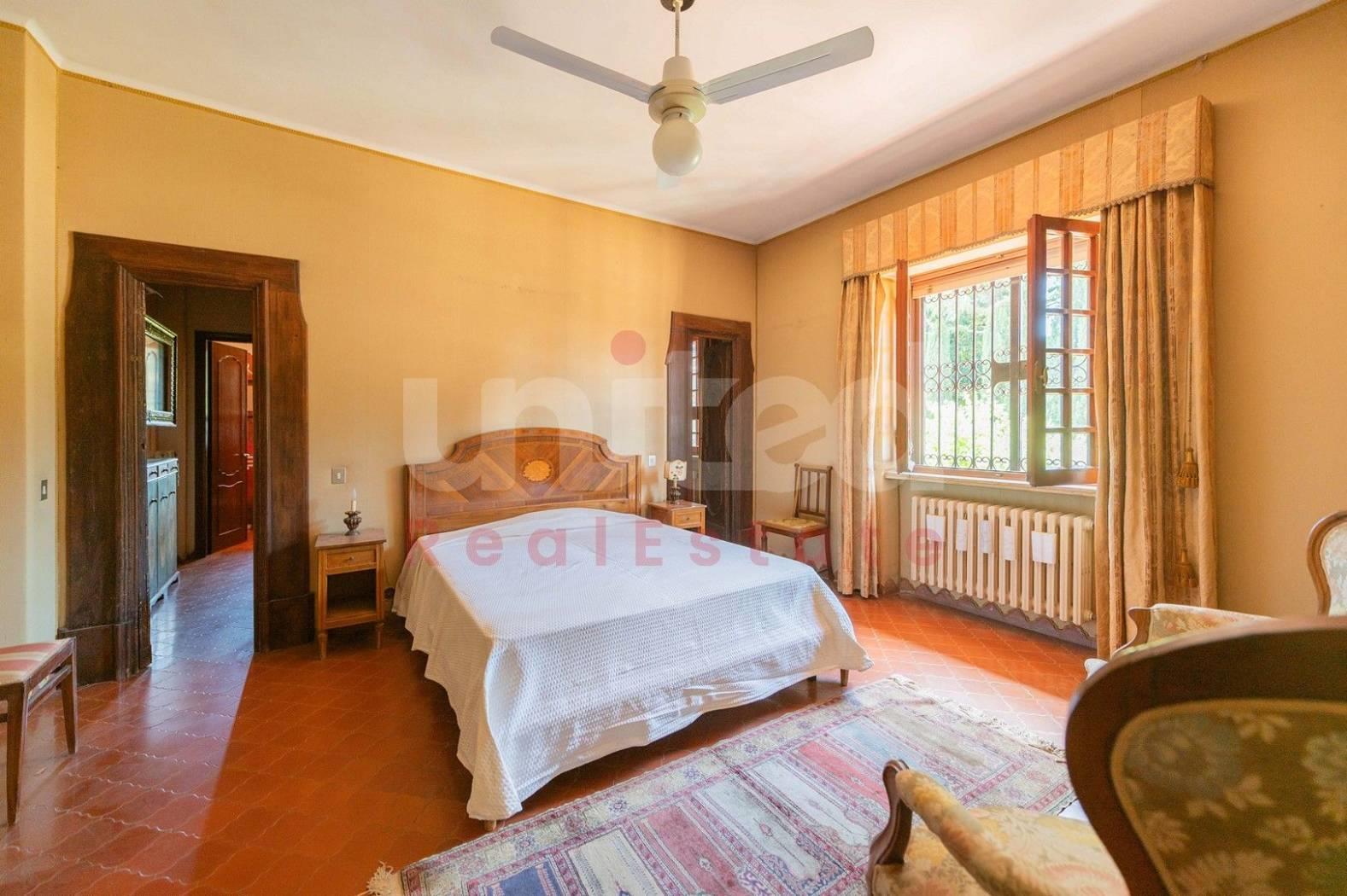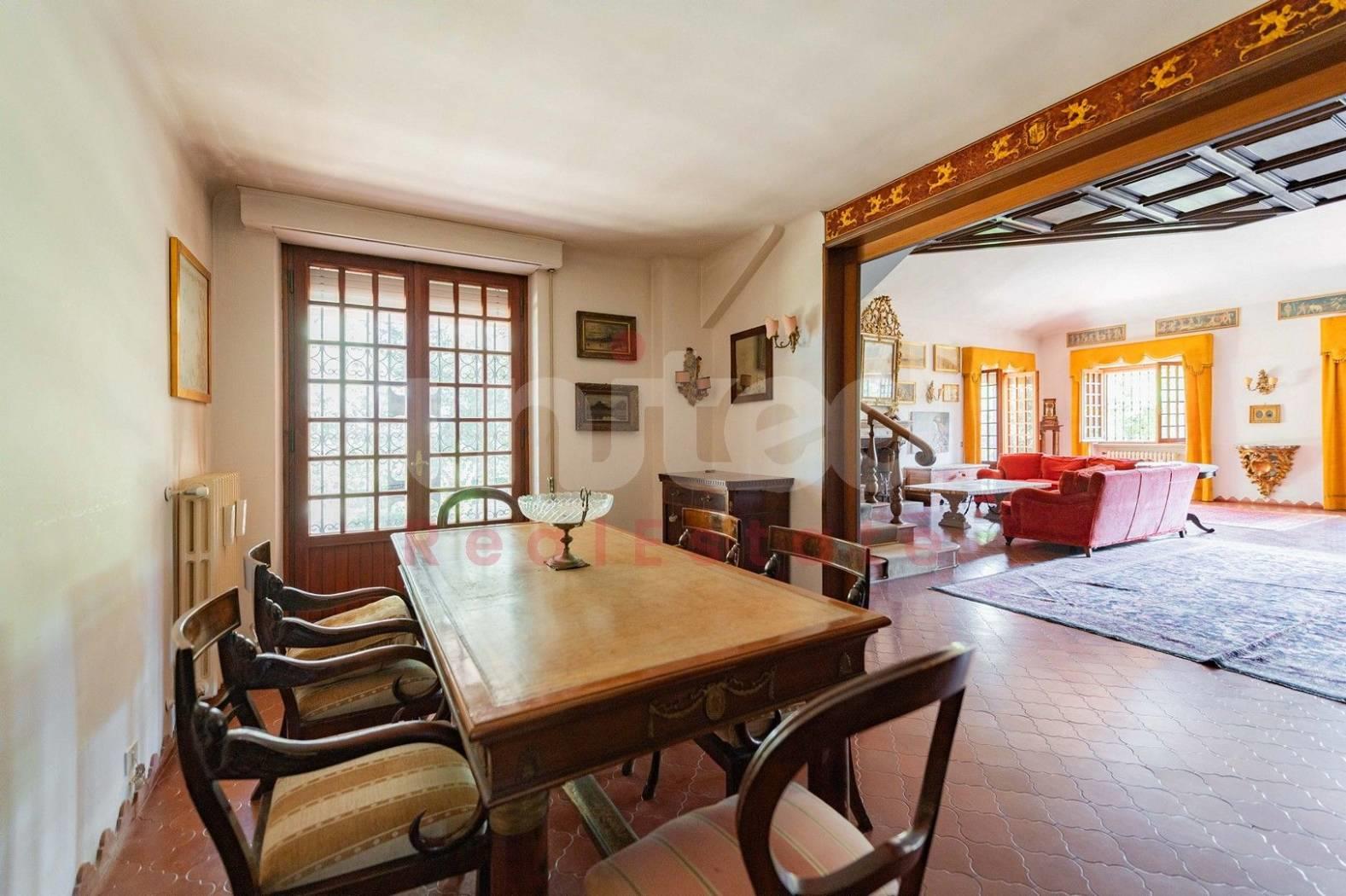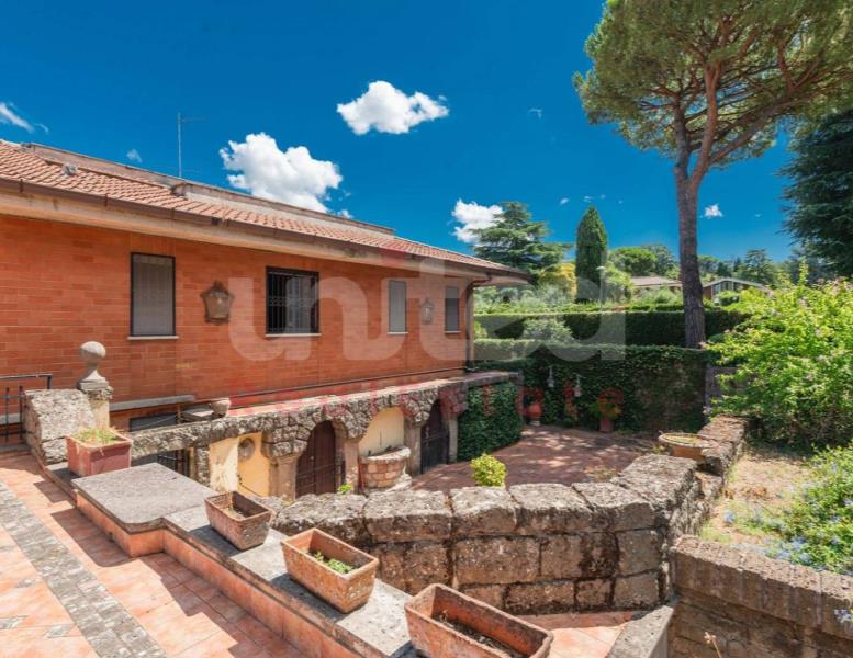 In una delle zone più esclusive di Frascati, Via di Salè, 7, la United Real Estate propone in vendita una splendida villa unifamiliare degli anni 70 su due livelli di 356 mq insistente su un lotto di circa 2500 mq. Entrando nella proprietà ci accoglie un magnifico e luminoso salone di rappresentanza con camino in pietra ed una scala di legno che conduce ad un'area rialzata con vista sul salone ed accesso a due terrazzi sul tetto con vista sul giardino; accanto al salone, un'elegante sala da pranzo con porta finestra sul giardino completa la zona giorno; sempre sullo stesso piano, lungo un corridoio troviamo 3 camere da letto, 3 bagni, la cucina ed un'altra sala da pranzo più piccola con affaccio su un ampio patio con vista sul giardino. La camera padronale è caratterizzata dalla presenza di due cabine armadio ognuna con il proprio bagno...un vero tocco di eleganza! Sia dall'esterno che dall'interno si accede al piano inferiore dove troviamo un'altra ampia zona giorno con grande camino in pietra, sala biliardo, una cucina abitabile con una grande dispensa e vista su un altro patio molto accogliente e confortevole, altre due camere da letto, un bagno completo, una zona relax con sauna, locale tecnico e cantina. Gli accessi alla villa sono due: uno pedonale ed un altro carrabile che permette l'ingresso ed il parcheggio a 3/4 macchine. Nel piano sottostante sono presenti anche due dependances, una con accesso dall'interno ed un'altra con accesso indipendente.