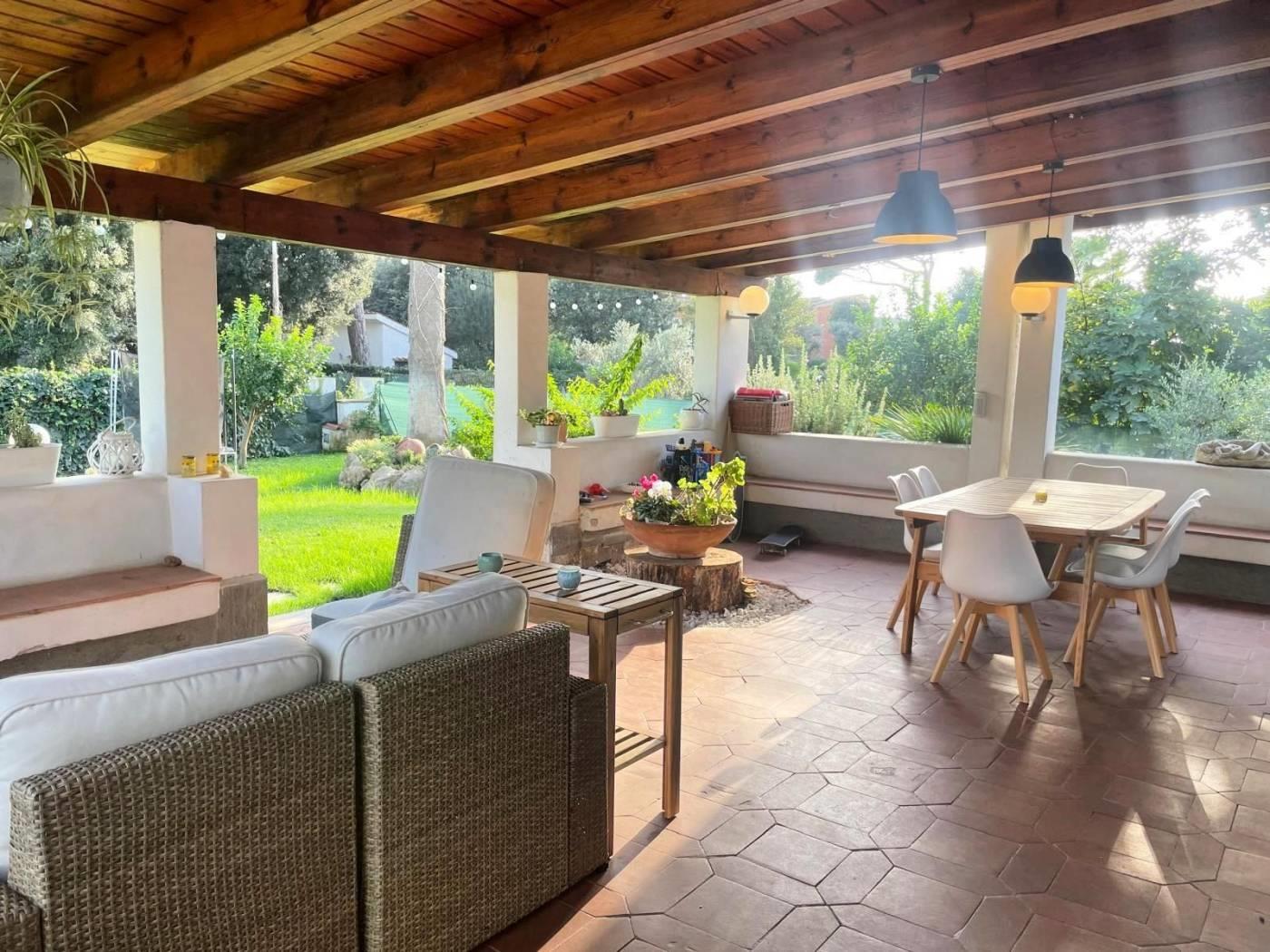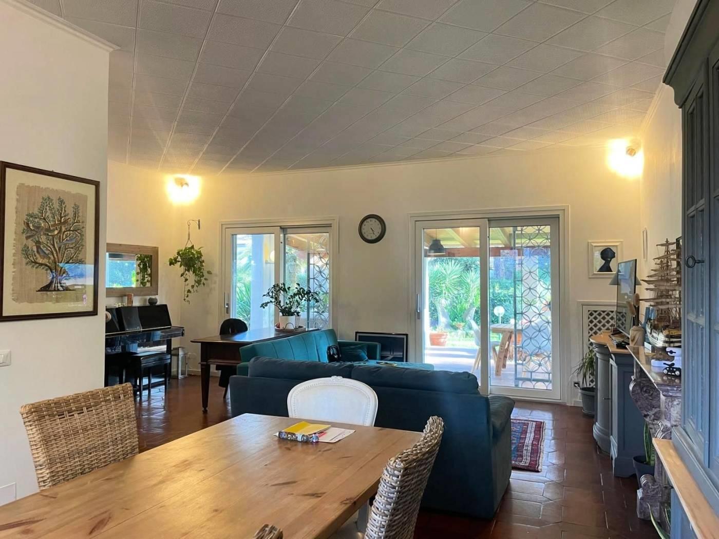 Fregene Centro – Splendida villa unifamiliare in posizione privilegiata. Al piano terra, l'immobile si compone di un ampio ingresso, un luminoso salone con camino, una cucina abitabile, un bagno e un grande patio esterno. Al primo piano troviamo tre spaziose camere da letto, ognuna dotata di bagno privato. Il secondo piano ospita una grande mansarda e un ulteriore bagno. Il piano seminterrato, accessibile sia dall'interno che dall'esterno, offre completa indipendenza. Accatastato come cantina e locale deposito, è attualmente attrezzato come taverna con camino e un comodo vano. Completano la proprietà un garage e un curatissimo giardino che circonda la villa, accessibile tramite cancello pedonale e carrabile, con piante di pregio che ne arricchiscono l’estetica. Sono stati effettuati dei lavori recentemente: - Pompa di calore elettrica + caldaia - termosifoni - cappotto esterno isolamento copertura - fotovoltaico - infissi - colonnina ricarica