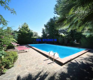 Ingresso con soggiorno con ampia veranda sul giardino e zona pranzo interna/esterna, doppio salone con camino, cucina completa di tutti gli elettrodomestici lavastoviglie compresa, 4 camere da letto matrimoniali con il bagno in camera, 1 camera da letto singola con bagno in camera, una cameretta e ripostiglio. Tutti i bagni sono completi di vasca/doccia e finestra.