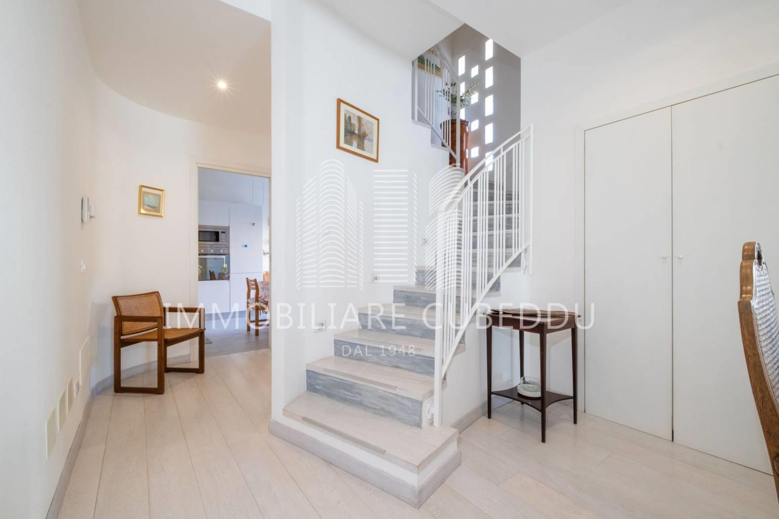 Il piano superiore, collegato sia da un’elegante scala interna che dall’ascensore privato, ospita due spaziose camere da letto, un bagno finestrato e un terrazzo abitabile balcone, ideale per momenti di relax all’aperto.