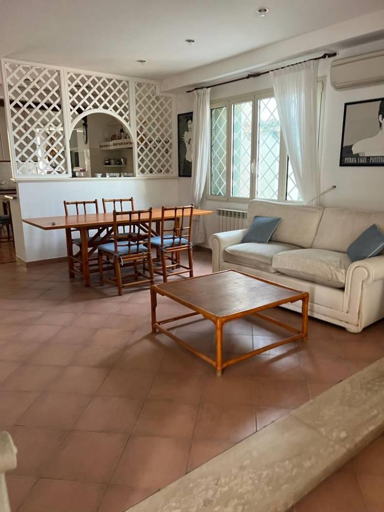 Proponiamo in affitto a Fregene a 20 metri dalla spiaggia, per la stagione estiva, deliziosa villa su un unico livello con dependance.