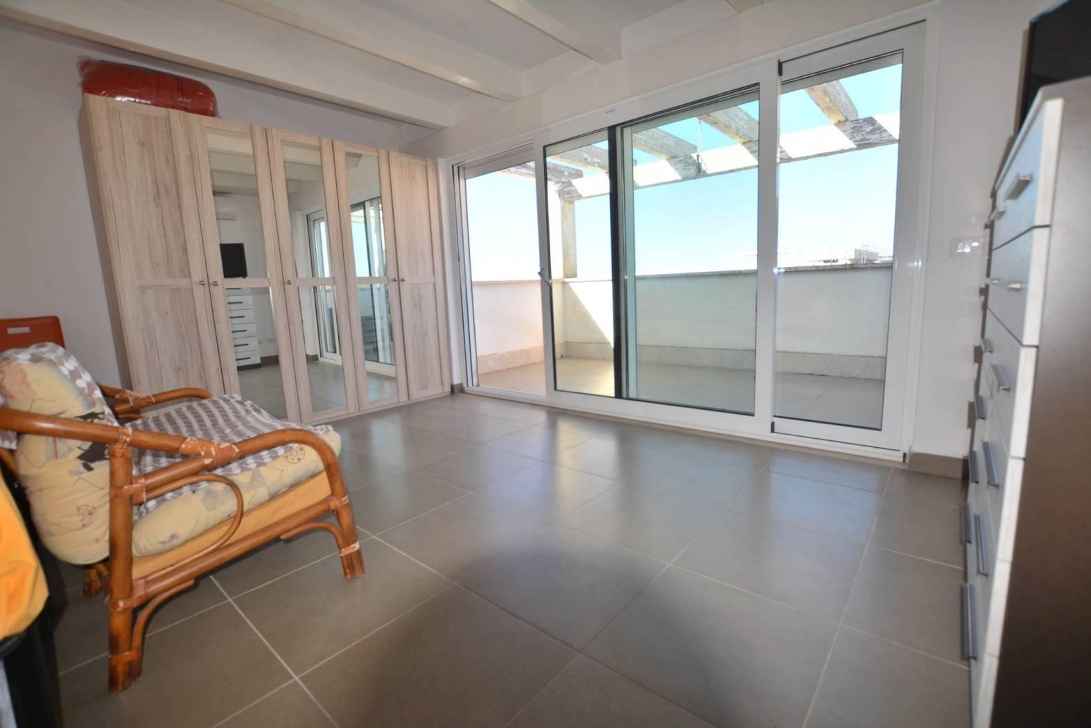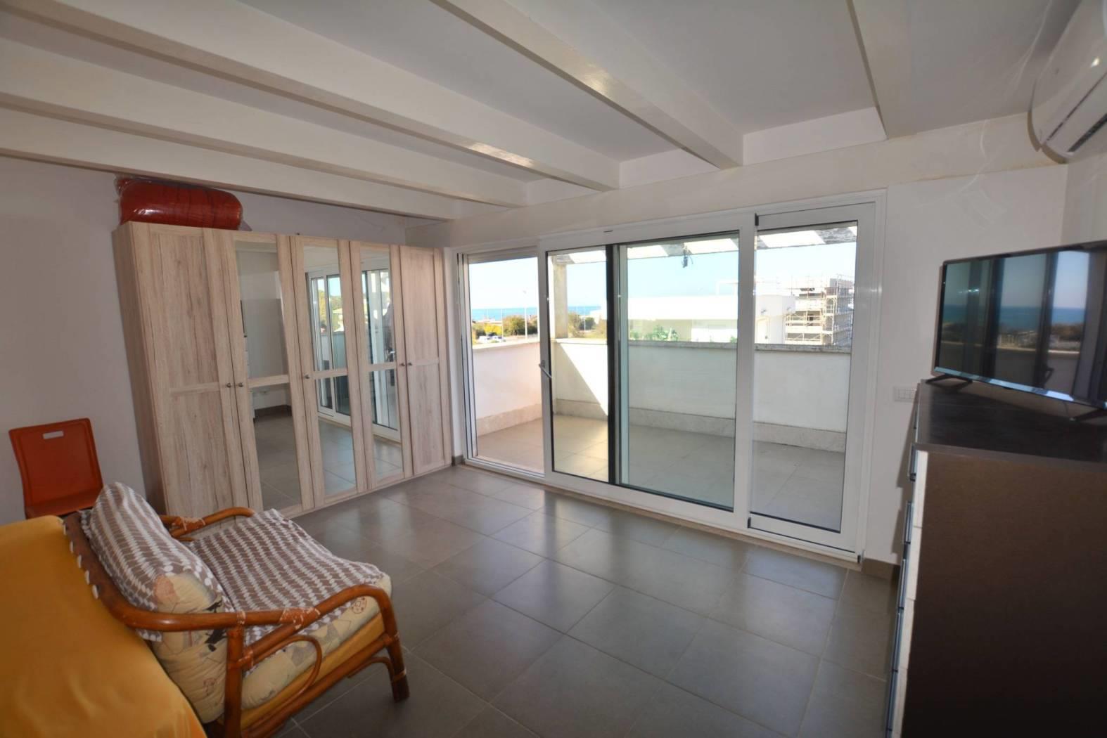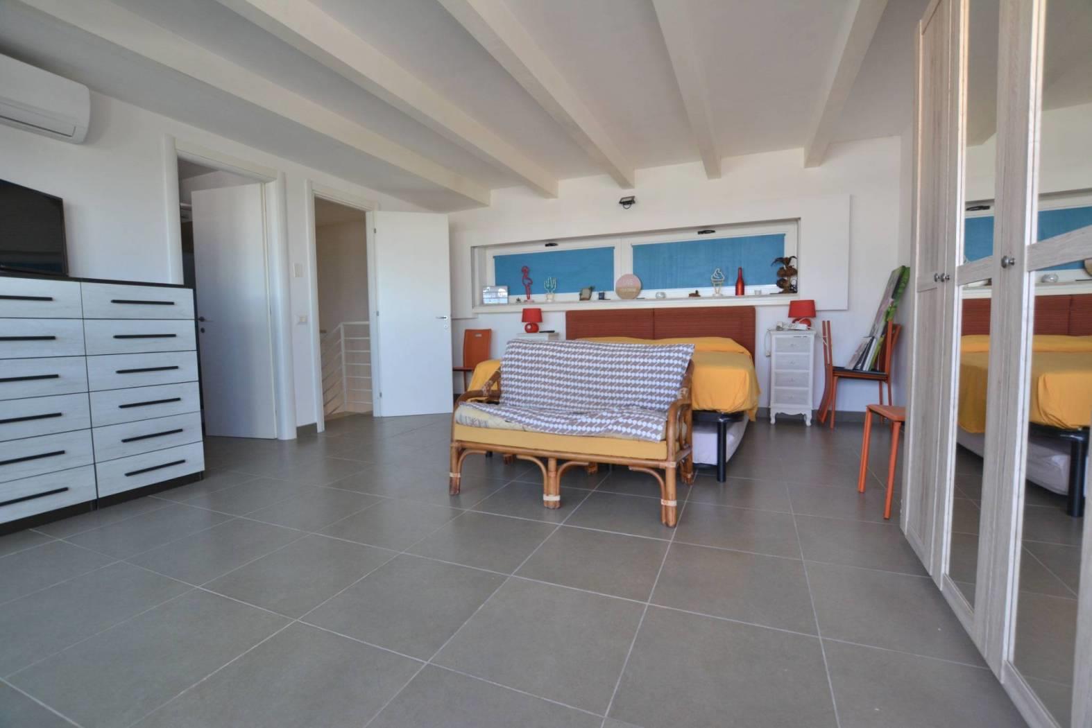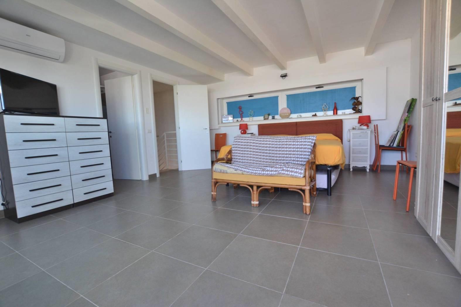 Al piano terra si apre un ampio salone con angolo cottura, perfetto per momenti di convivialità e relax ed un bagno, mentre ai piani superiori si trovano due camere da letto, altri 2 bagni e un pratico ripostiglio. La villa dispone inoltre di due balconi e di un terrazzo panoramico all’ultimo piano, dal quale si può ammirare una magnifica vista sul mare, regalando scorci unici e indimenticabili tramonti.