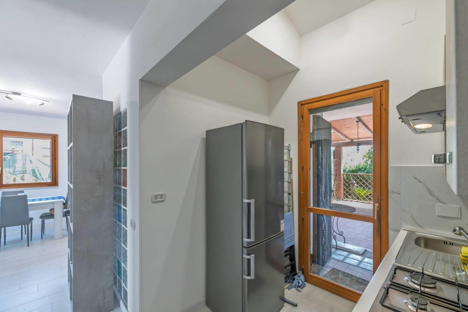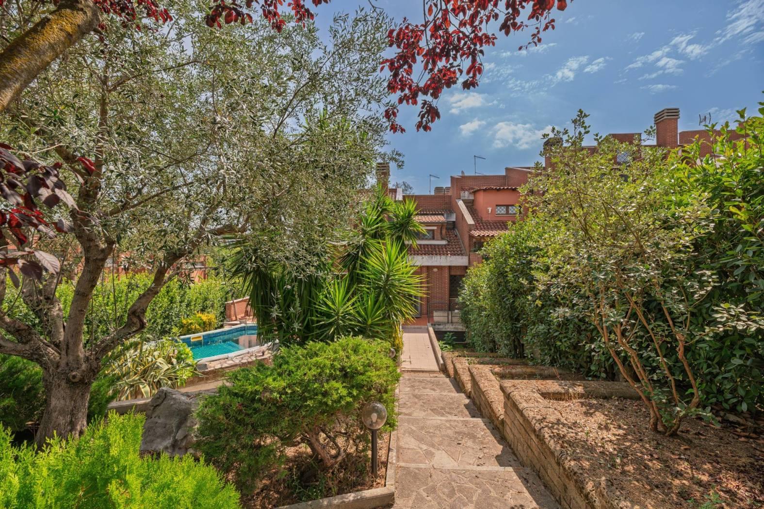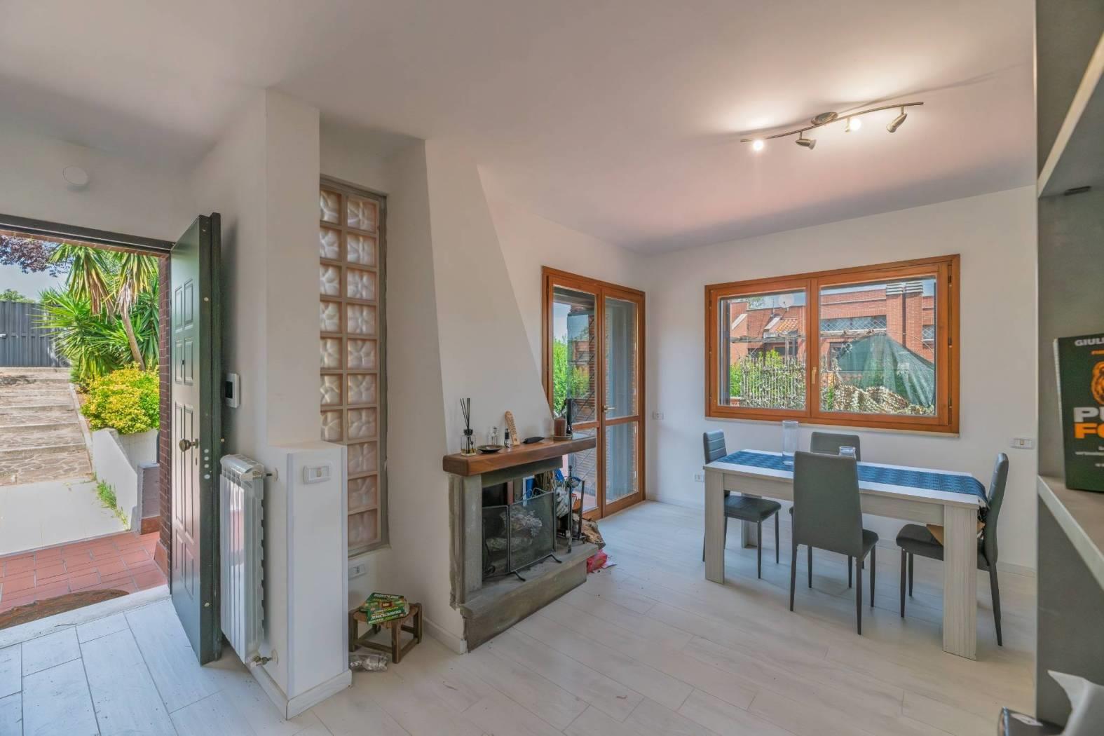 Giustiniana località Castelluccia, precisamente in via Cardinale Ugo Poletti, è disponibile in vendita un villino a schiera d'angolo, divisibile in due appartamenti indipendenti, in ottime condizioni. La proprietà si articola su tre livelli: al piano terra si trova l'ingresso, un salone con camino, una cucina, un bagno, un giardino di circa 400 mq e un terrazzo di circa 190 mq con forno e barbecue; al primo piano vi sono due camere da letto, un bagno con vasca e un balcone; al piano seminterrato troviamo un ingresso indipendente, un salone triplo con camino, una cucina a vista in muratura, due camere, due ripostigli e un bagno con vasca idromassaggio. Due posti auto scoperti completano la proprietà. L'immobile è dotato di impianto di allarme con videosorveglianza, infissi in legno con doppi vetri, grate alle finestre, portoncino blindato, aria condizionata nelle camere da letto e una piscina di circa 25 mq.