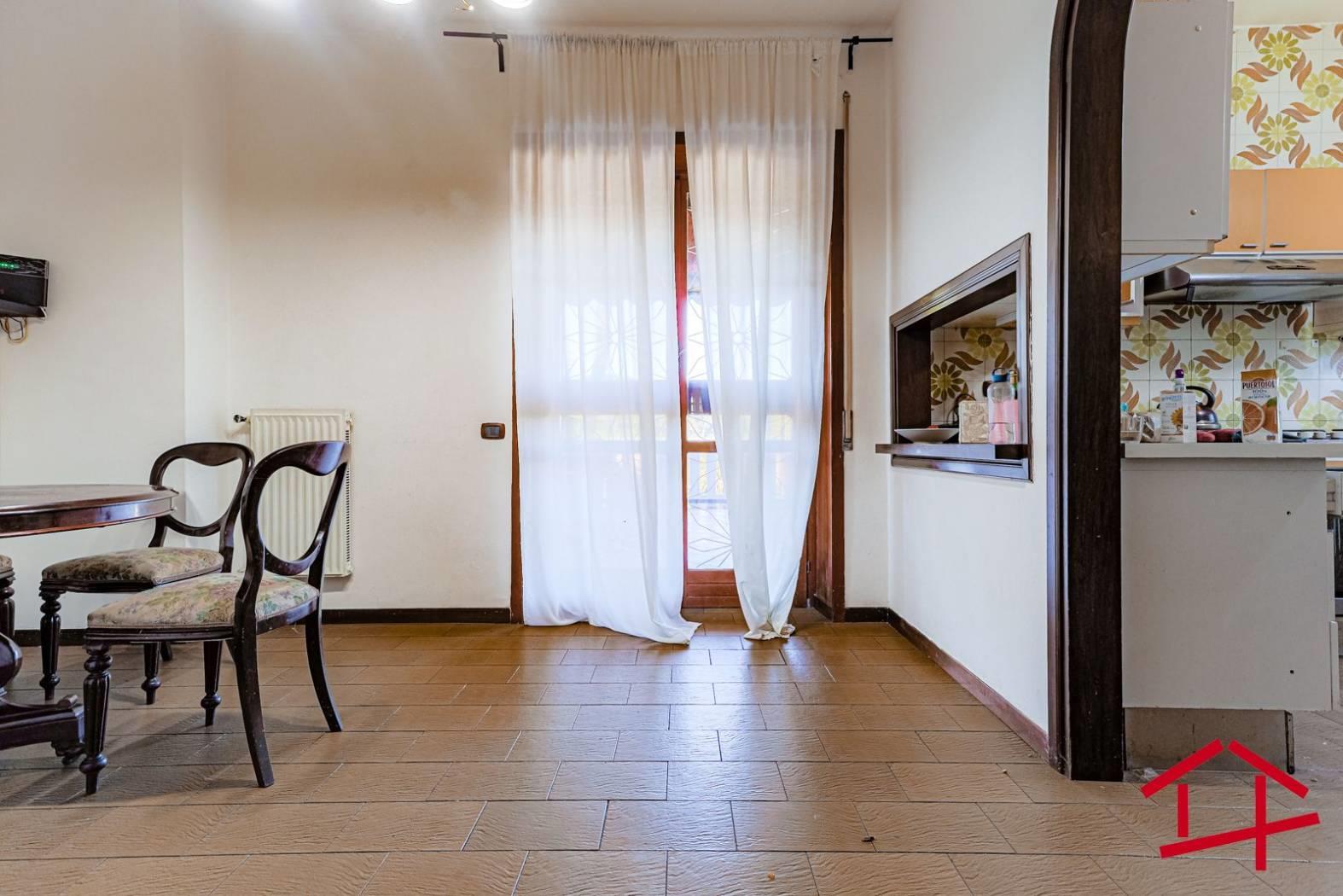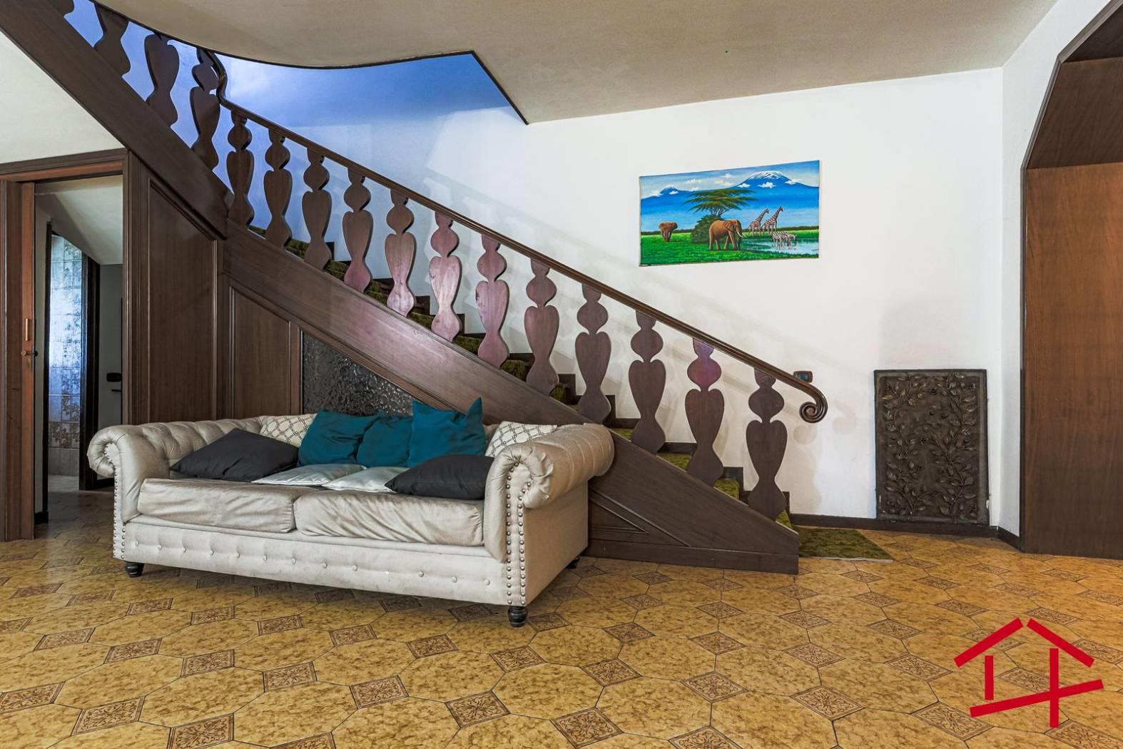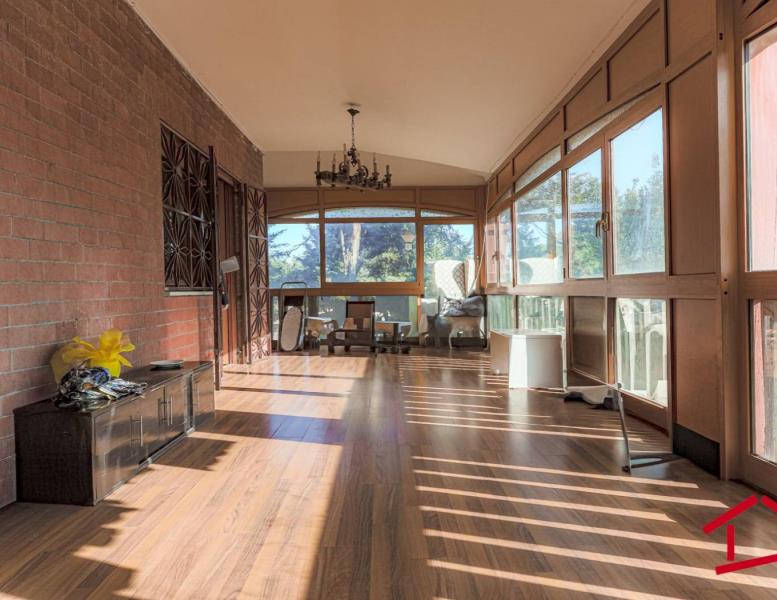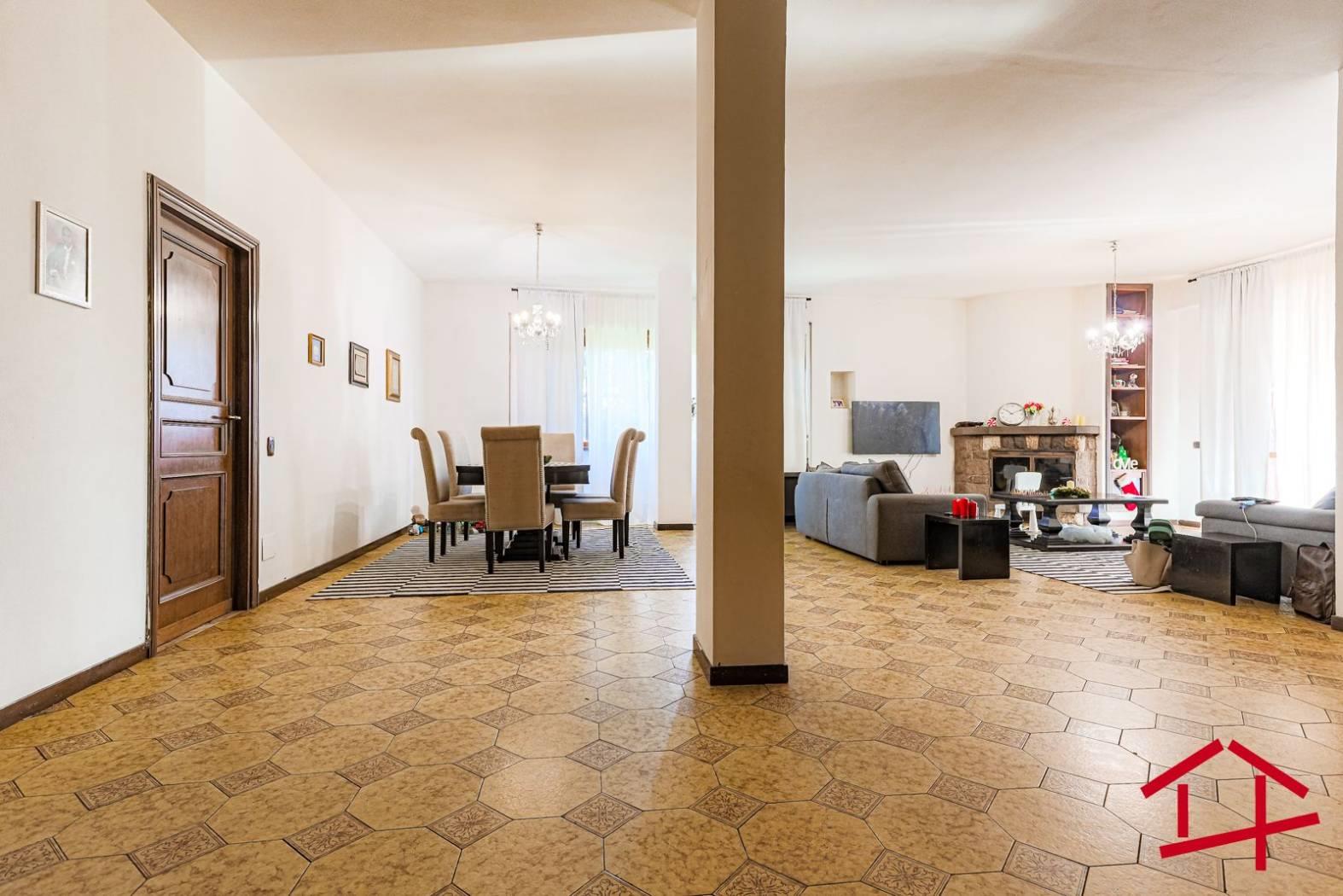 Ingresso pedonale e carrabile su un ampio giardino, salone triplo con camino, cucina abitabile con tinello, una camera, un bagno e uno splendido terrazzo panoramico ad oggi verandato.