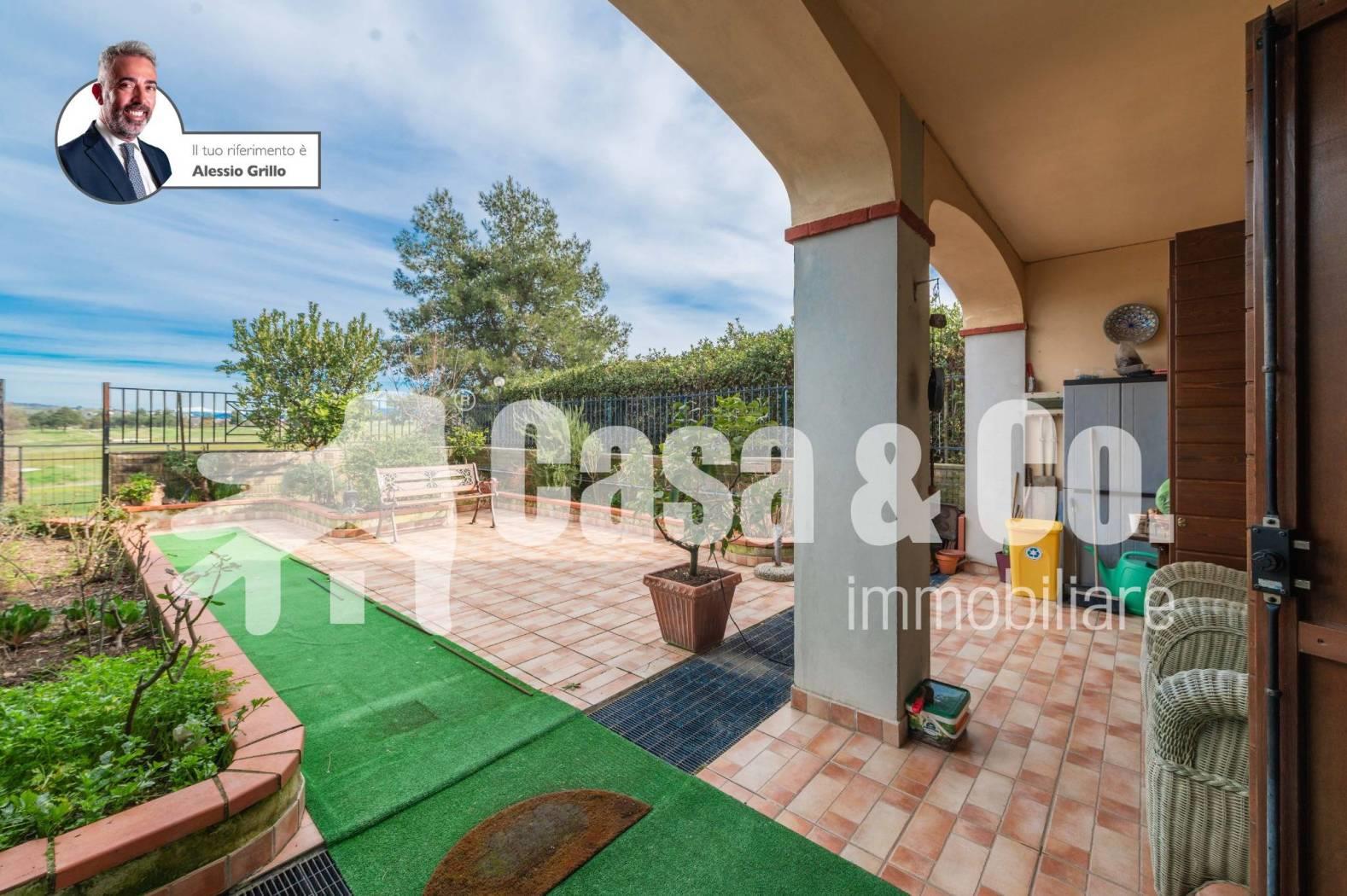 La villa vanta un magnifico affaccio direttamente sui Campi da Golf oltre ad avere la particolarità di essere una villa capo testa angolare, con il grande privilegio, visto un maggior numero di finestre , di una elevata luminosità Questa caratteristica rende l'abitazione più accogliente ed esclusiva.