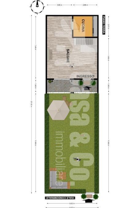 L immobile è così composto : Piano Terra : ingresso indipendente, ampio salone con camino (possibilità di realizzare un bagno),cucina con finestra, patio e giardino;