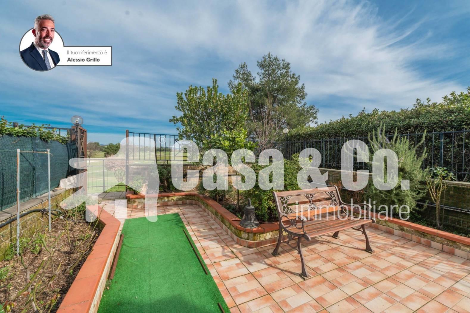 VILLA MARCO SIMONE GOLF CLUB Rara opportunità, In posizione unica con affacci aperti sul monte Terminillo, splendido villino a schiera angolare immerso nel verde con ampi spazi comuni molto ben curati. Area giochi bambini, servizio di Portineria H24 bar Ristorante ed ampie aree parcheggio ospiti proponiamo in vendita luminosa villa disposta su tre livelli più piano box auto e cantina.