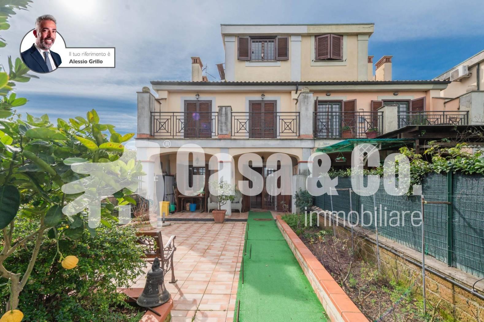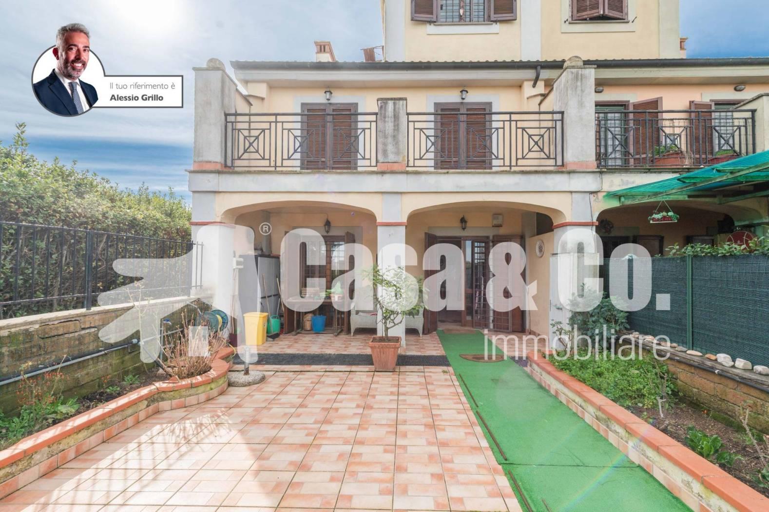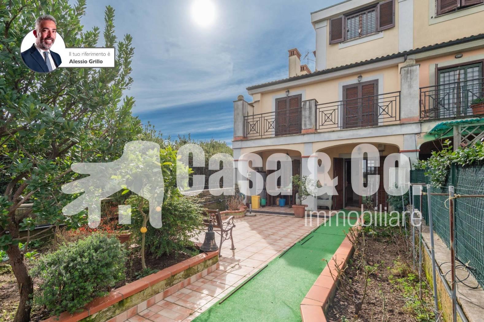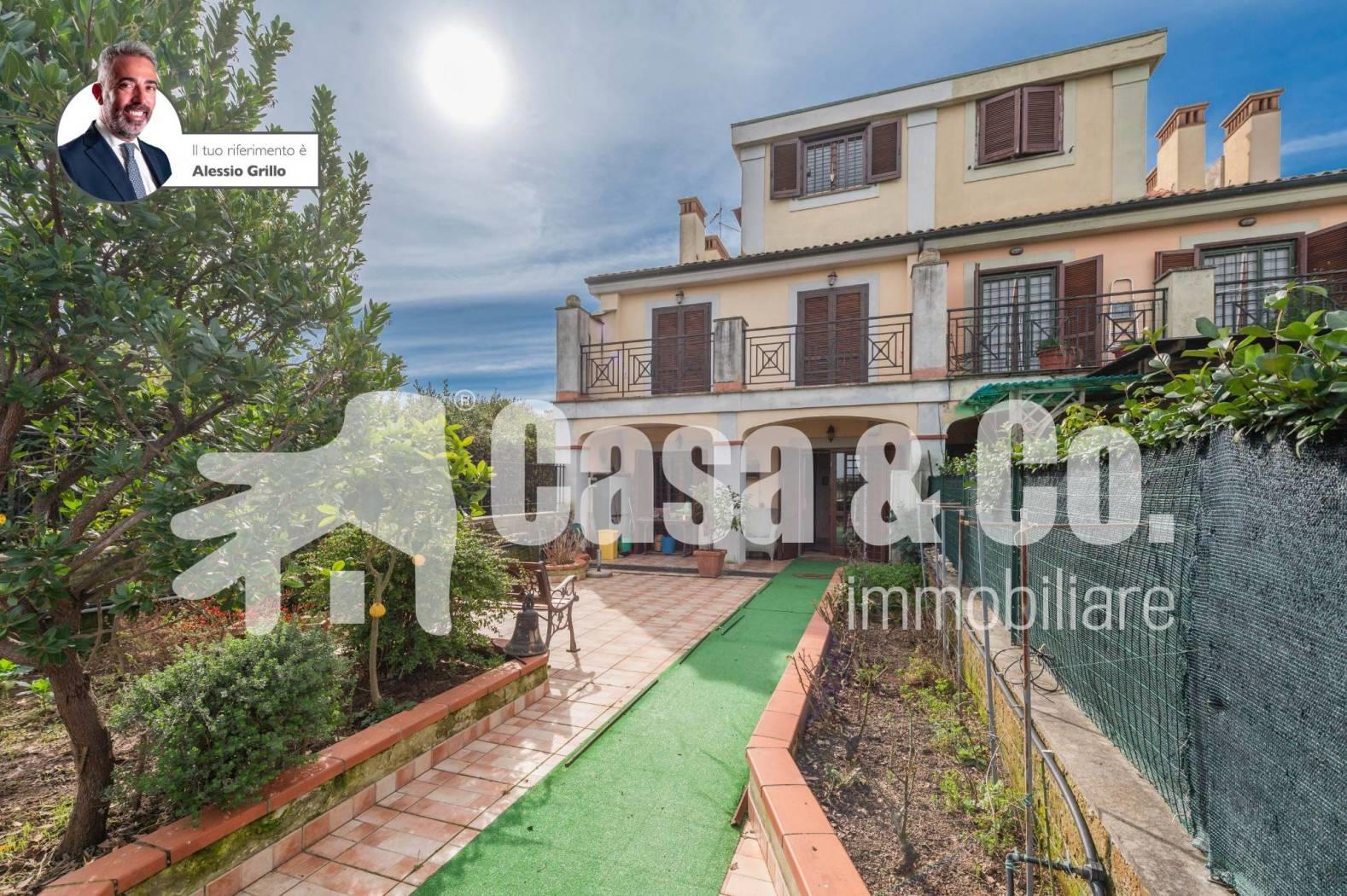 Piano 1° : camera matrimoniale, cameretta, con accesso al balcone, bagno con Finestra, cabina armadio ; Piano 2°(accatastato come piano servizi) : ambienti notte con possibilità di realizzare due camerette, disimpegno, bagno con finestra(catastalmente lavatoio) e terrazzo; Piano S1: locale lavanderia , sala hobby e box auto tutti i piani sono collegati tra loro mediante comoda scala interna. L'immobile sarà Libero al rogito. CARATTERISTICHE: Riscaldamento termoautonomo. Tipologia di infisso esterno: legno doppio vetro .Pavimentazione nella zona notte Parquet Rivestimento esterno in: quarzo. Accesso per disabili: presente. Fibra: presente nello stabile. Porta ingresso: blindata. Grate alle finestre: presenti. Riscaldamento acqua: caldaia a gas. Aria condizionata: presente. Le spese condominiali sono così suddivise: Condominio € 35,00 (trentacinque/00) c.a. Super condominio € 95,00 (novantacinque/00) c.a. mensili compreso acqua. Nelle vicinanze garantiti tutti i maggiori servizi come: linee autobus, metro, poste, banche, farmacie, mercato, super market, bar, tabaccherie. METRATURE NETTE: Piano Terra: soggiorno : 32 Mq. circa; cucina: 2,9x 2,5 = 7,25 Mq circa; portico : 1,95 x 6 = 9 Mq circa; giardino: 6 x 12 = 72 Mq circa Piano Primo : camera matrimoniale : 2,8 x 5 = 14 Mq circa; cameretta: 3x3 = 9 Mq circa; cabina armadio: 2,4x1,9 = 4,56 Mq circa; bagno: 2,8 x 2,3 = 6,4 Mq circa; terrazzo: 1,9x6=11,4Mq c.a. Piano Secondo : primo ambiente: 3 x 3 = 9 Mq circa; secondo ambiente : 2,9 x 2,2 = 6,38 Mq circa; Bagno (Lavatoio catastalmente): 1,9 x 2,4 = 4,56 Mq circa; terrazzo: 2,7x 2 = 5,4 Mq circa; Piano S1: LAVANDERIA: 1,6 x 2 = 3,2 Mq circa; Sala Hobby : 3 x 3,4 = 10,2 Mq circa; Box Auto: 6,9 x 2,9 = 20,01 Mq circa. Vi ricordiamo che durante tutti i nostri appuntamenti sul posto, vi verrà consegnata una scheda informativa con tutte le informazioni sull'immobile come : planimetria ,dati catastali ,tasse inerenti l acquisto o la locazione ,spese di condominio e di riscaldamento e tanto altro ancora. PER INFORMAZIONI: Agente immobiliare di riferimento: ALESSIO GRILLO Uff. 06/86970173 Cell. 348/7460753 Facebook: https://www.facebook.com/casaecoroma/ Sito: www.casa-co.eu Email: info@casa-co.eu Classe energetica: G.