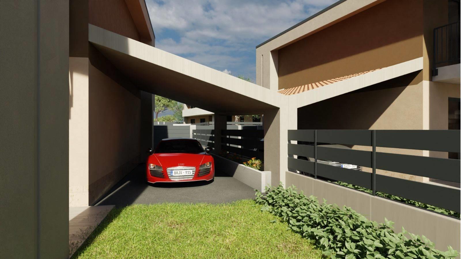 n. 3 bifamiliari tutti con grandi porticati, balconi di servizio, posto auto coperto privato, ampio giardino e posti auto scoperti situato all'interno dell'area interna al complesso.