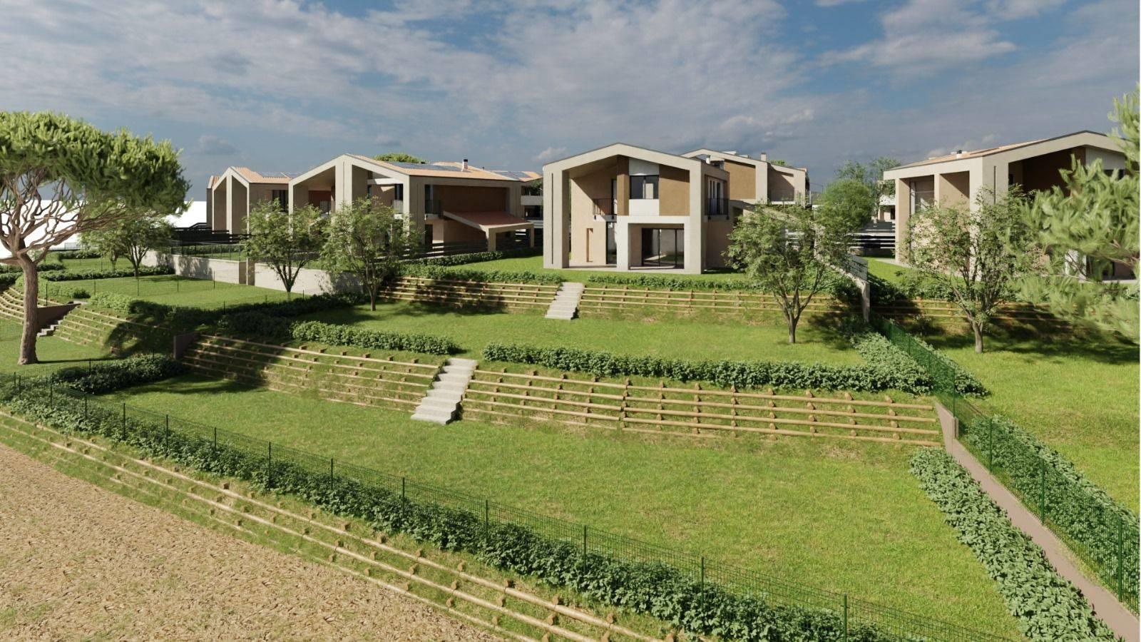 n. 3 bifamiliari tutti con grandi porticati, balconi di servizio, posto auto coperto privato, ampio giardino e posti auto scoperti situato all'interno dell'area interna al complesso.