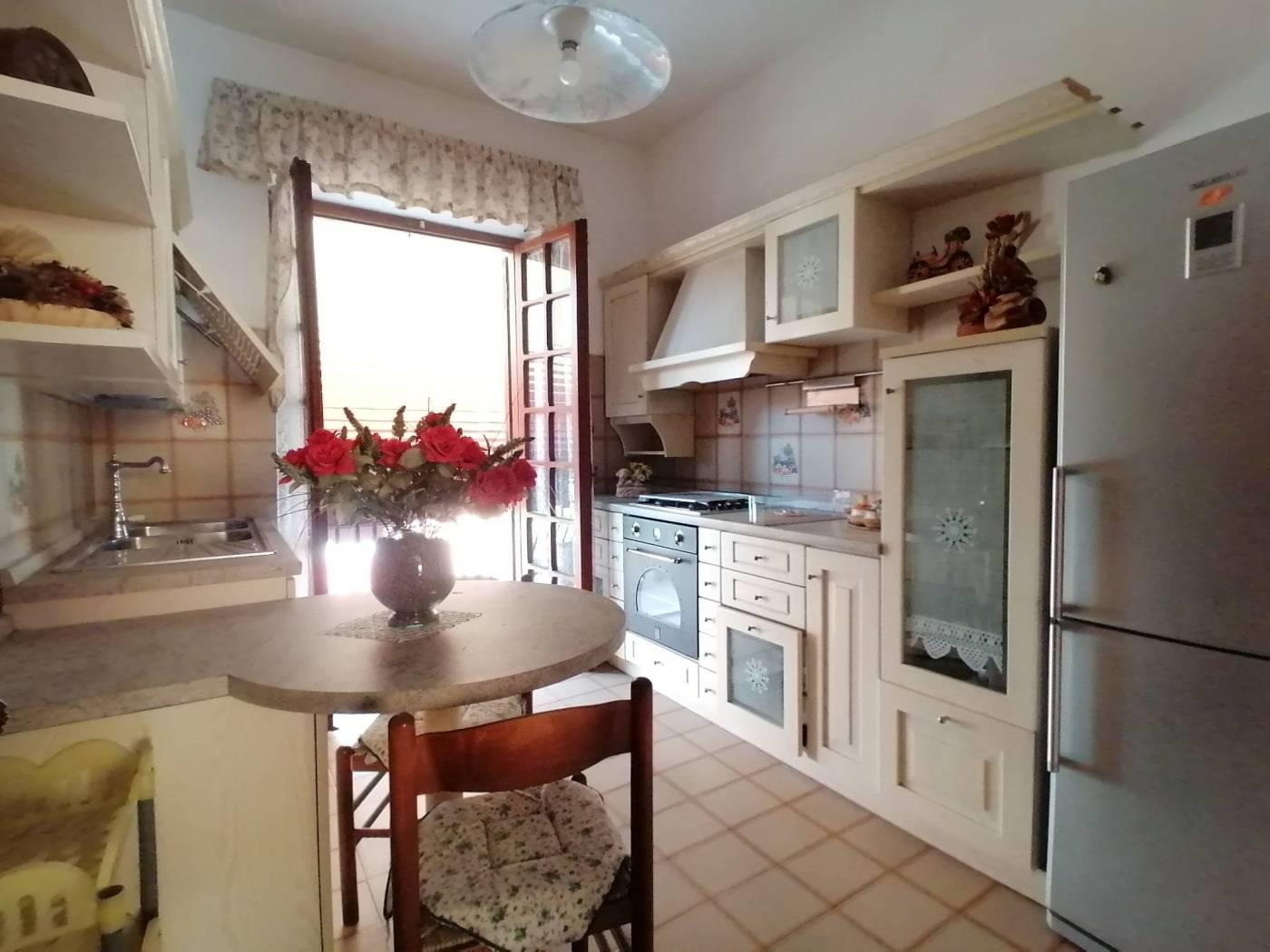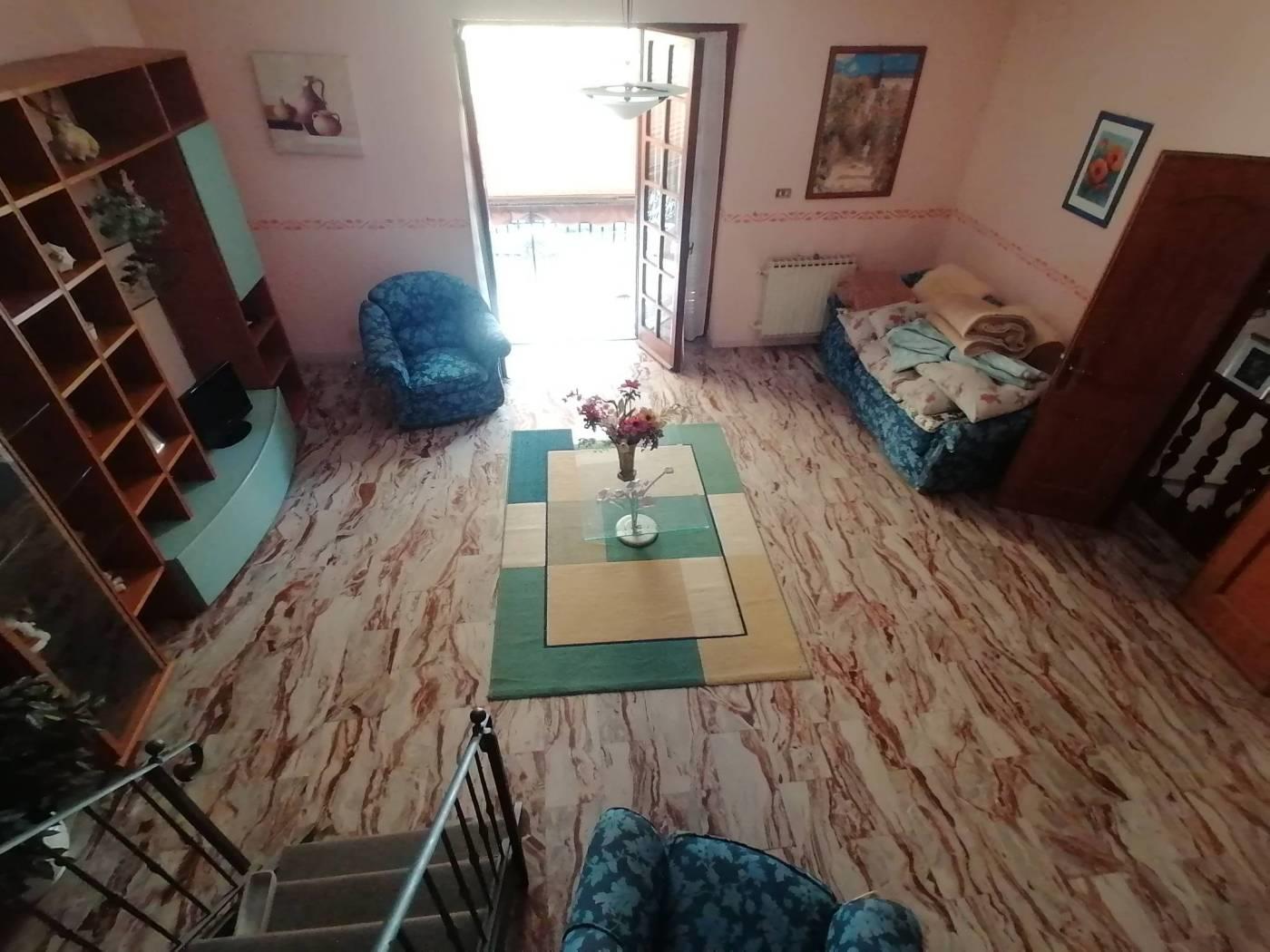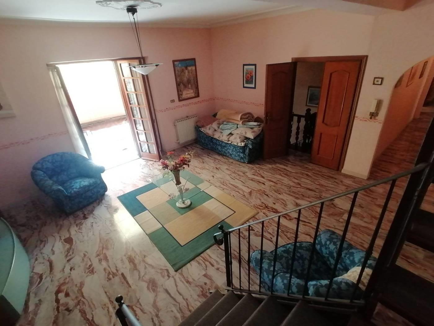 Piano terra: ampio ingresso-salone di rappresentanza, disimpegno su cucina abitabile con camino, ampio salone verandato, corridoio, camera matrimoniale, cameretta, bagno finestrato con vasca, per un totale di mq 145 residenziali-abitativi;