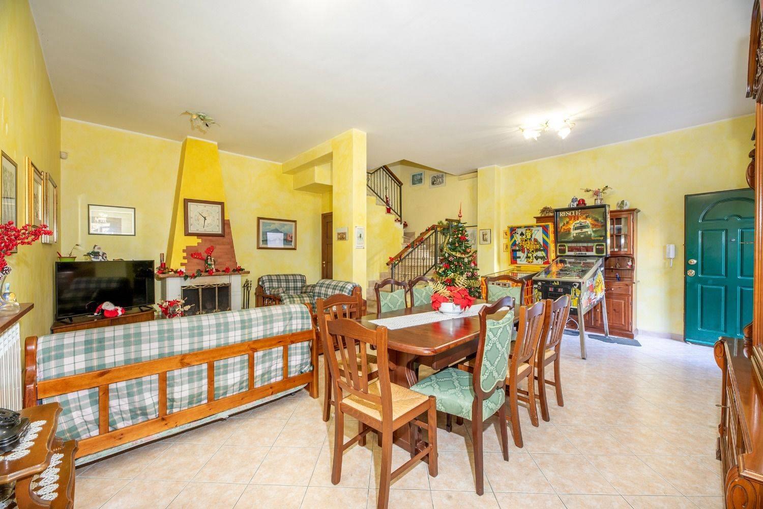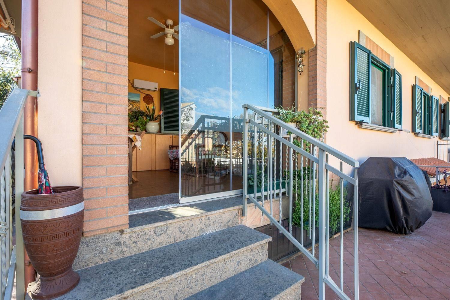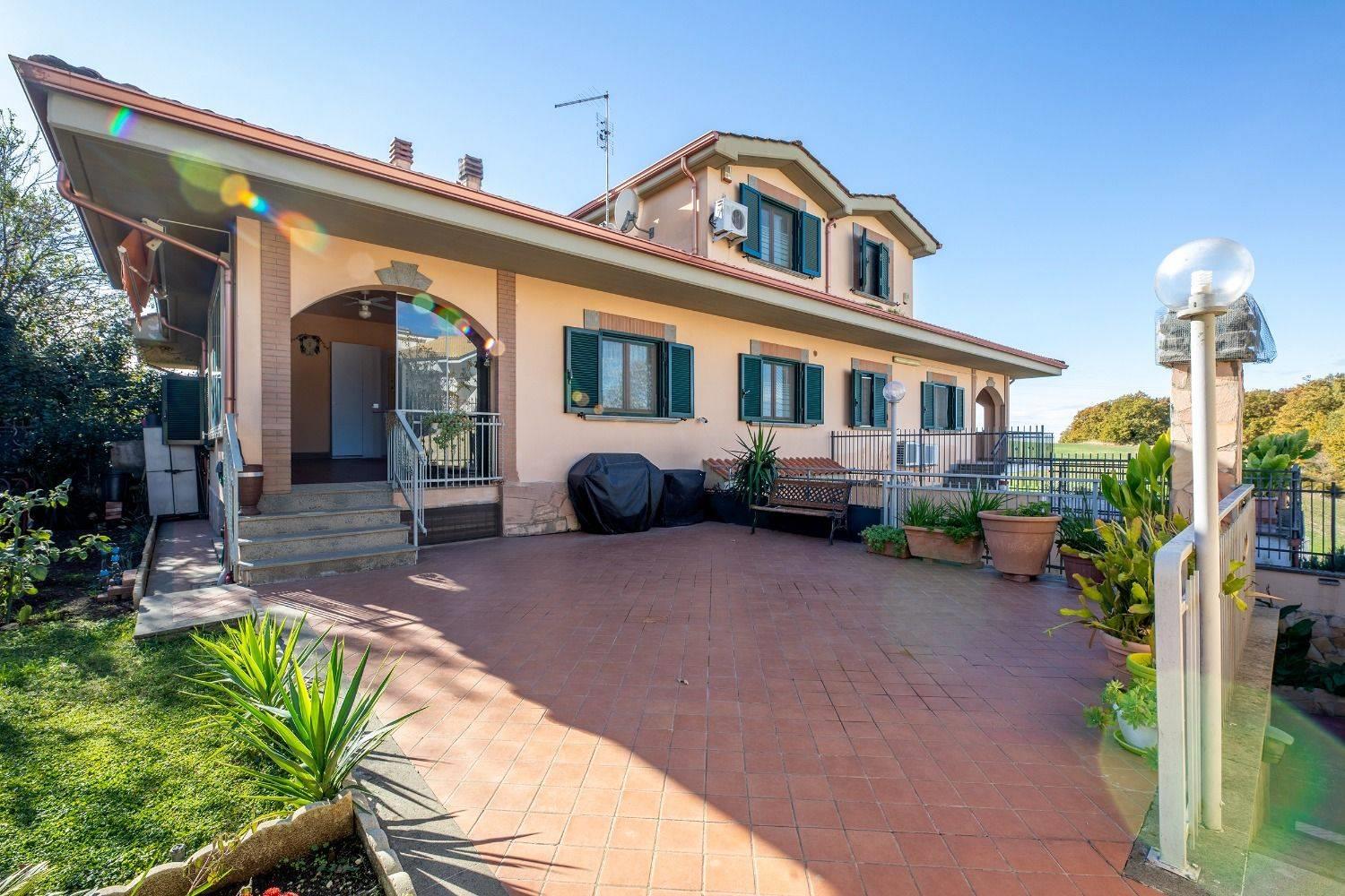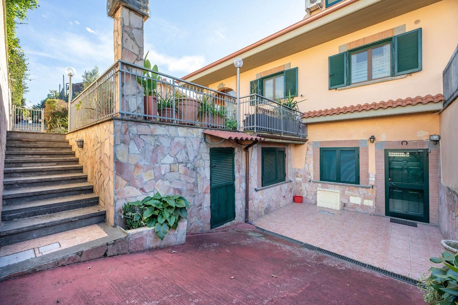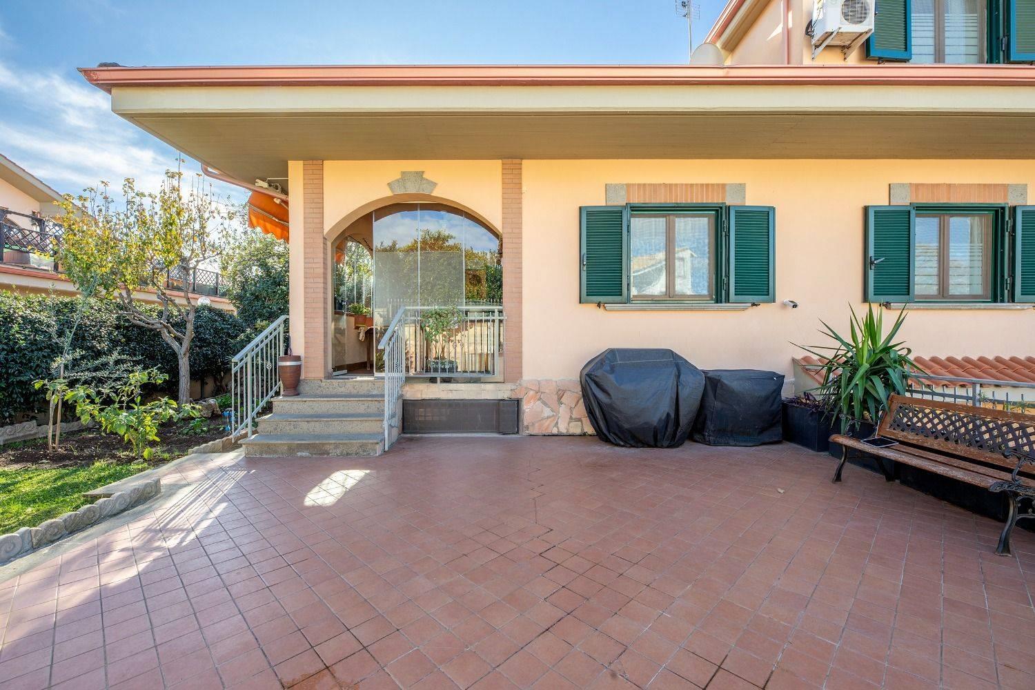 Piano terra da ampio portico di ingresso con salone, cucina a vista, bagno e corte esterna con parte di giardino di circa 150 mq. totali. Piano primo da due camere, bagno e piccolo terrazzino con vista panoramica. Il Piano seminterrato è costituito da ampio salone con camino, cucina abitabile, camera e bagno, cantina e ampia corte per due parcheggi. La villa, nata in un residence con ingresso pedonale e carrabile condominiale in via Olevano Romano, successivamente è stato creato un secondo ingresso, con strada privata che ha accesso da via Madonna della Pace, rendendolo autonomo dal resto del residence. Recente costruzione - OTTIMO Stato. Se fino ad oggi acquistare casa ha significato vagare da un'agenzia all'altra, con la FRIMM di Fonte Nuova puoi scegliere tra migliaia di immobili in qualsiasi zona!