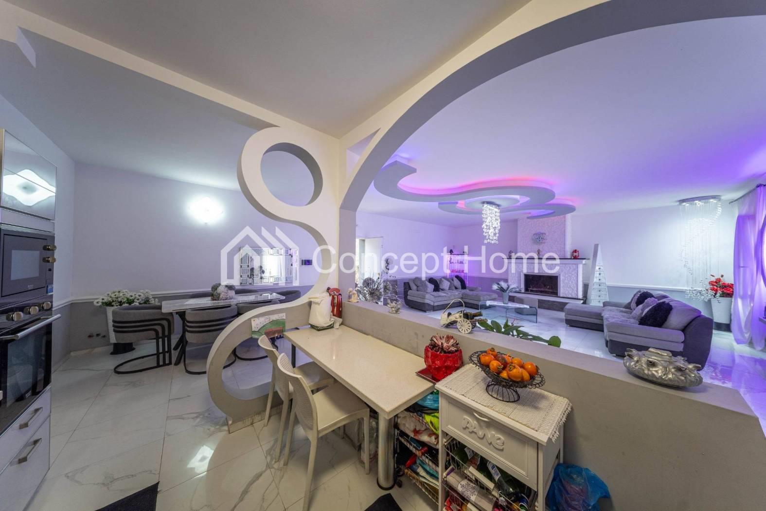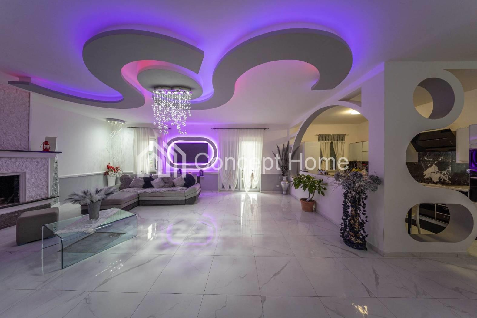 Al piano principale troviamo un grande salone triplo di circa 80 mq, caratterizzato da ampie vetrate e da un elegante camino che rende l’ambiente accogliente e perfetto per la convivialità.