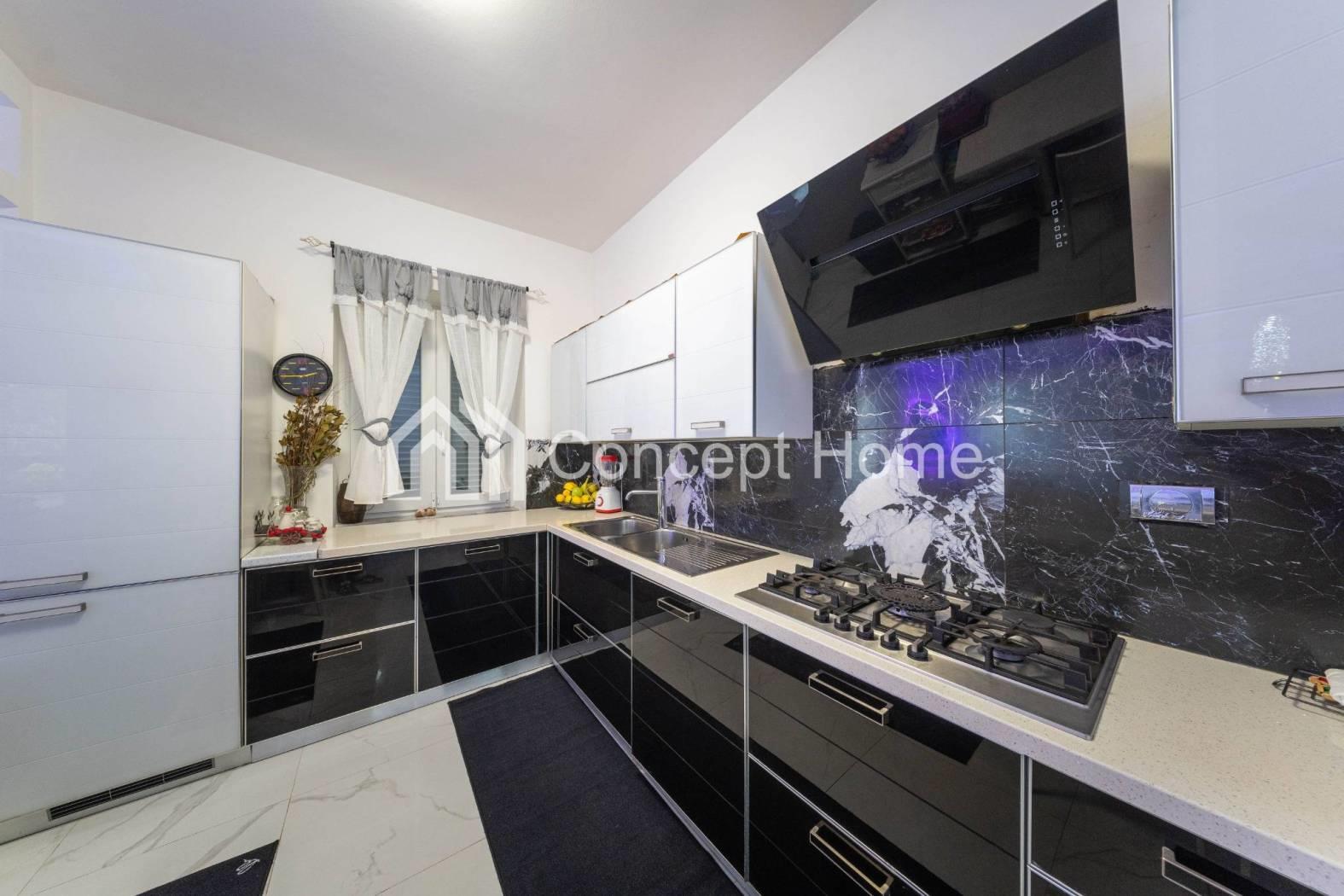La cucina è spaziosa e funzionale, separata dalla zona giorno.