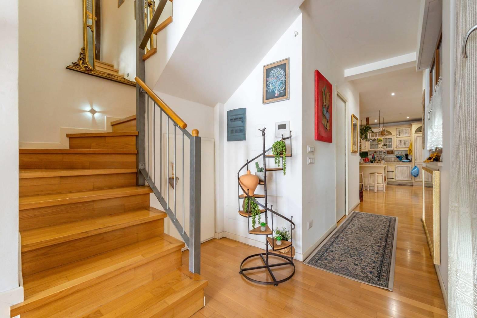 La villa si sviluppa su tre livelli, per un totale di circa 170 mq interni, ed è completata da un curato giardino pavimentato, ideale per momenti di relax all’aperto o per accogliere amici e familiari.