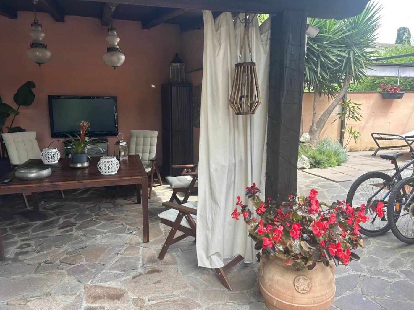 La proprietà è impreziosita da un giardino esterno di circa 300 mq e un patio di 30 mq con forno, ideale per vivere momenti di relax e convivialità all'aria aperta.