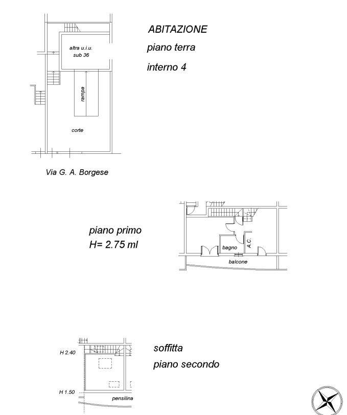 Al piano primo si trova la zona notte composta da 2 camere grandi con accesso al balcone, nel quale troviamo il vano caldaia, e un bagno con vasca.
