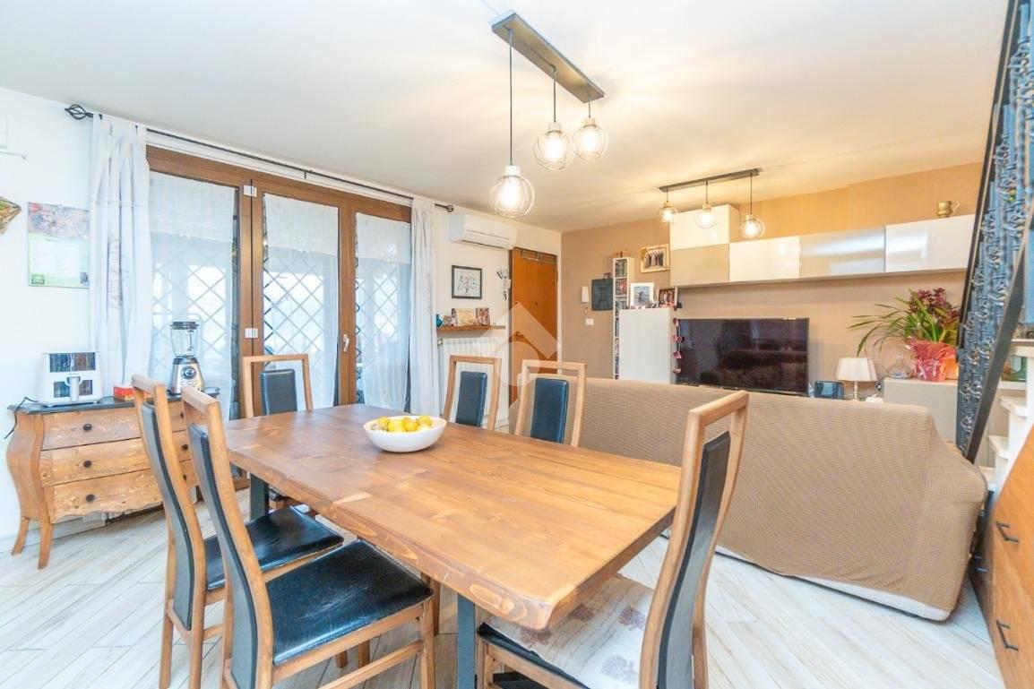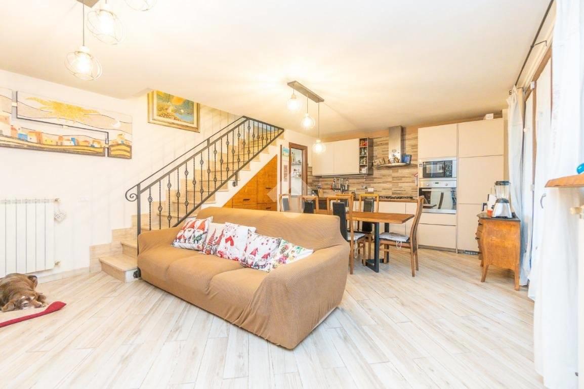 Proponiamo in vendita, in una zona ben servita dalla comodità dei tanti servizi presenti e dall'ottimo collegamento del trasporto pubblico, una graziosa villa a schiera suddivisa su tre livelli fuori terra di circa 100 mq così composta: