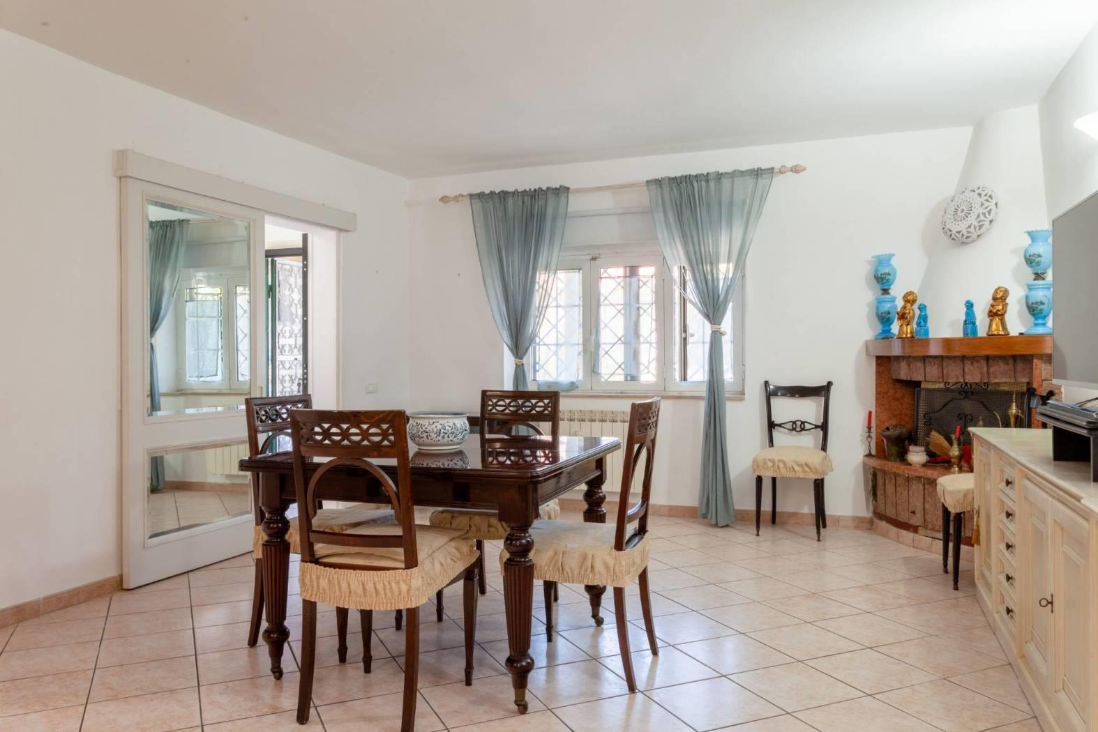 infernetto proponiamo in vendita una villa monofamiliare divisa in due appartamenti indipendenti e gia' accatastati singolarmente . l'immobile e' ubicato in una posizione tranquilla e riservata , in prossimita' della cristorforo colombo , arteria statale principale da cui e' possibile raggiungere il litorale ed il centro di roma . la proprieta' e' cosi composta : al piano terra con ingresso indipendente , troviamo un disimpegno , salone doppio con camino, cucina abitabile ,dalla quale si puo' accedere ad una splendita veranda immersa nel verde , nella zona notte un'altro grande disimpegno , due camere enormi e due ampi bagni. al piano primo con ingresso privato, al quale si accede tramite una scala esterna, troviamo un secondo appartamento composto da un ampio patio , salone doppio due camere da letto , due bagni , una cucina abitabile e disimpegno.