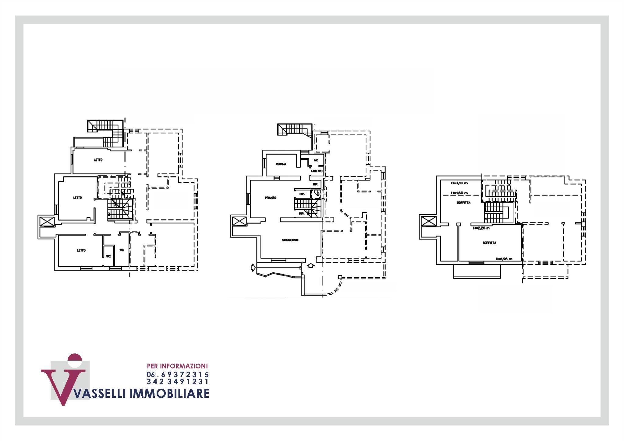 Piano 1°: Ingresso/disimpegno, 3 Camere Matrimoniali,3 Bagni.
